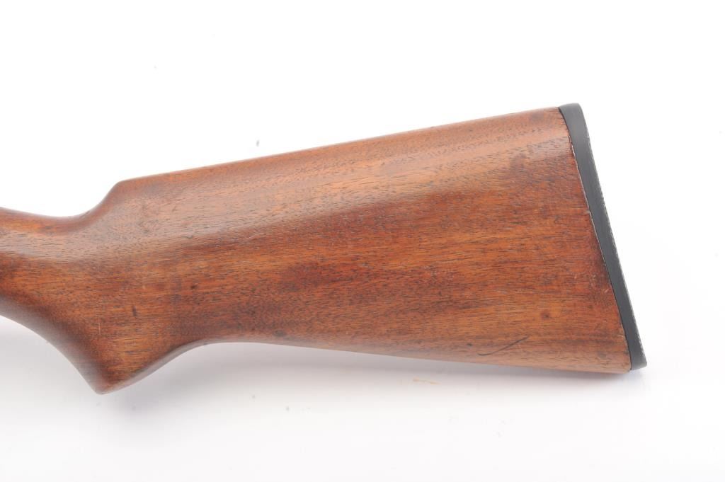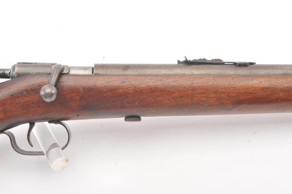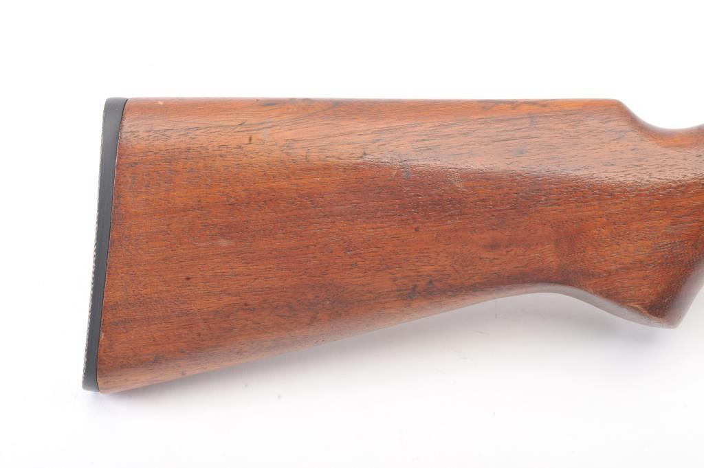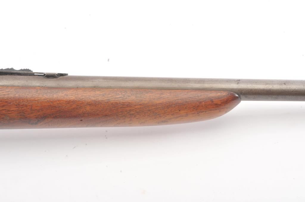Winchester Model 60A bolt action single shot rifle, .22 Short caliber, Serial #NSNV. The rifle is in good overall condition with a 23” barrel. The metal surfaces have gone to a grey patina with light surface erosionevident. The smooth wood stock is in good condition with small mars and dents from carry and use. The bore is fair, the action functions and the markings are legible. Est.: $90-$180. (C+R).