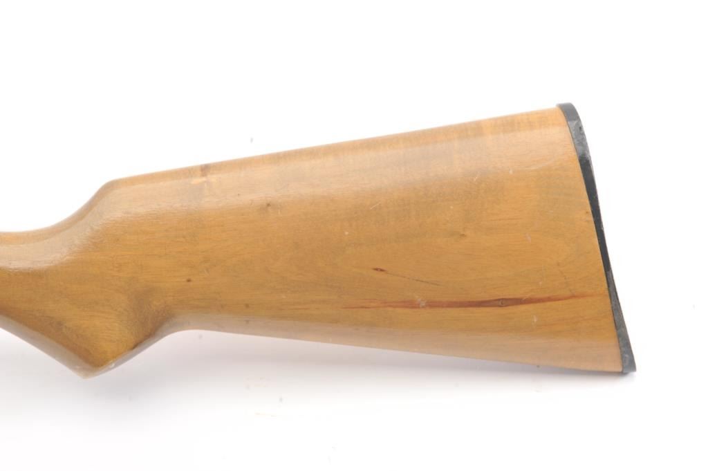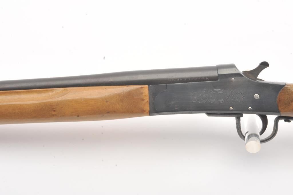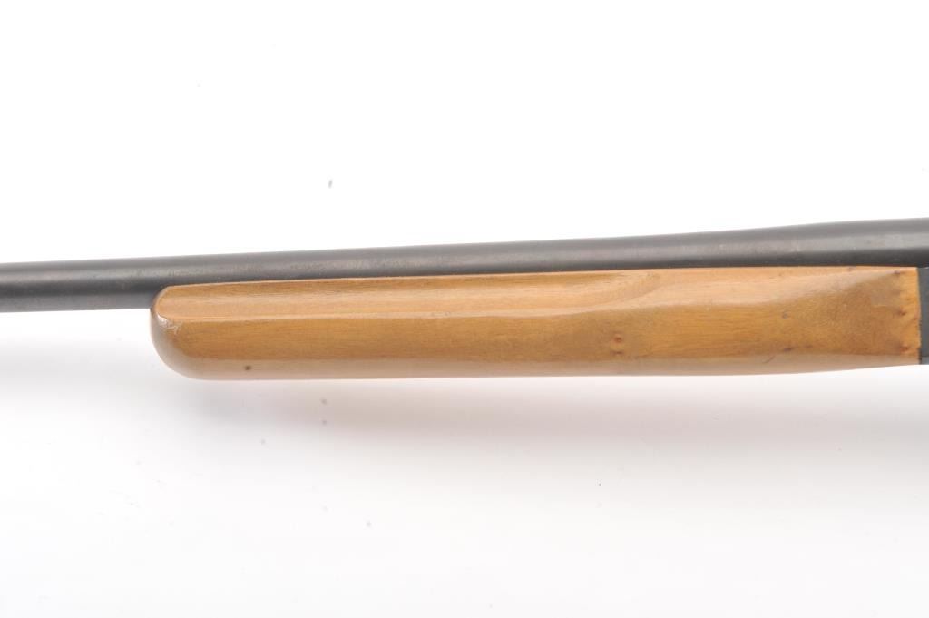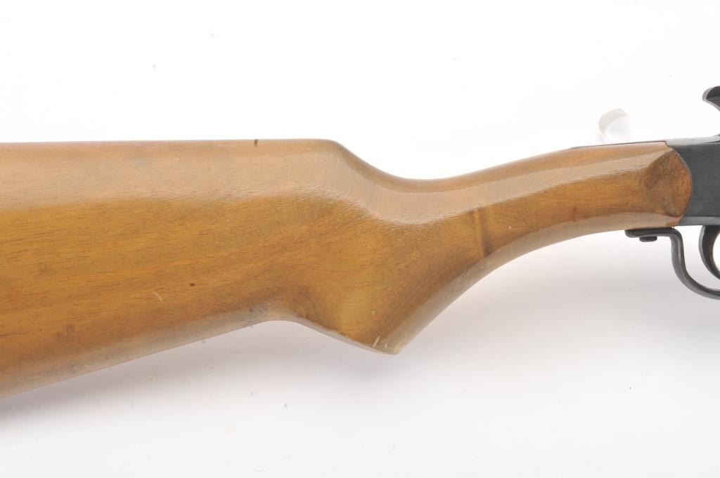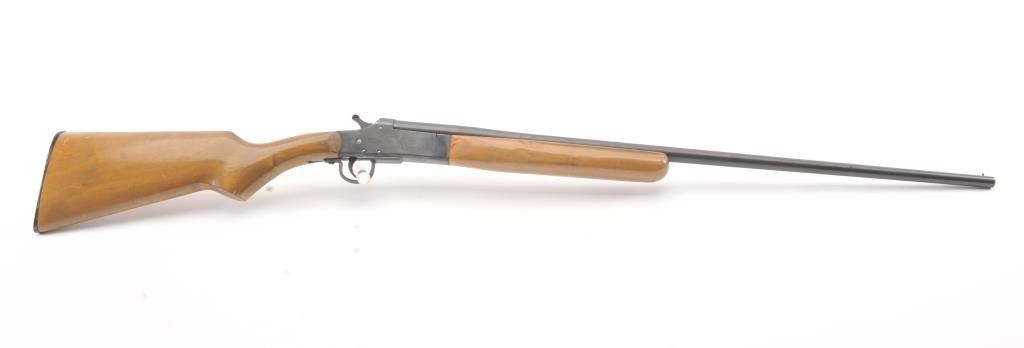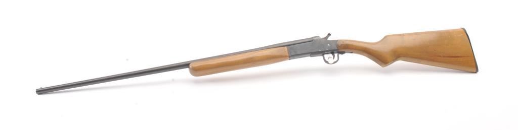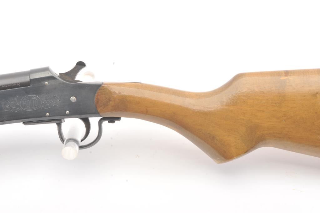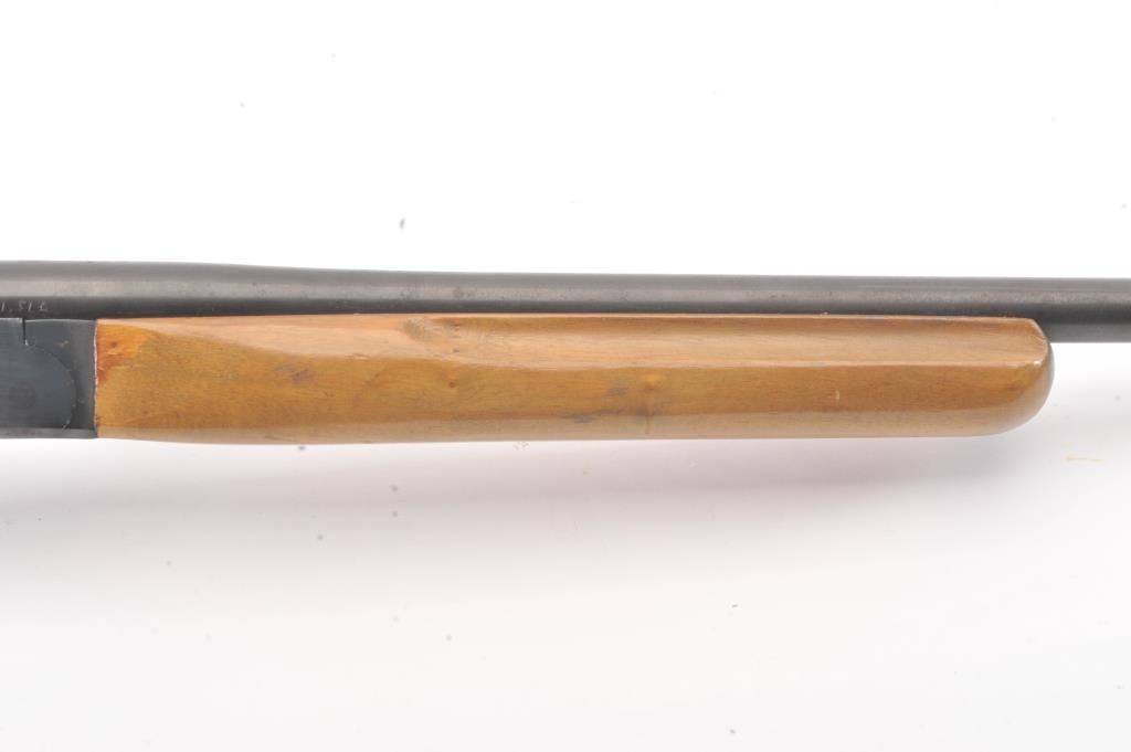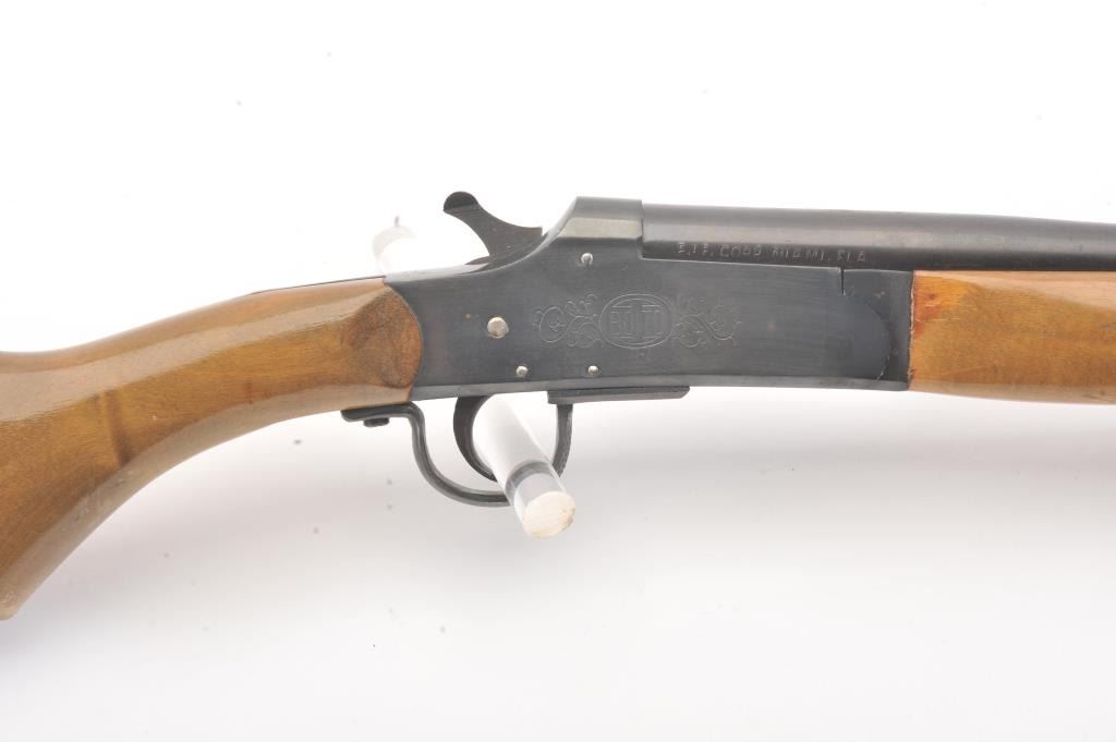 Boito single shot shotgun, .410 gauge, Serial #436847. The shotgun is in very good overall condition. The 28” barrel retains the majority of the blue finish with light surface rust evident. The receiver showssignificant muted blue with areas of surface erosion. The smooth wood stocks are in very good condition with small mars and a checkered plastic butt plate. The bore is dirty and may clean to fair, the action iscrisp and the markings are legible. Est.: $80-$160. (Modern).