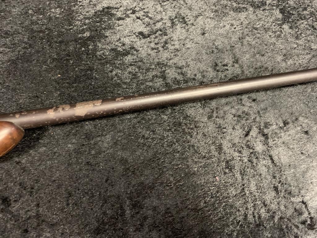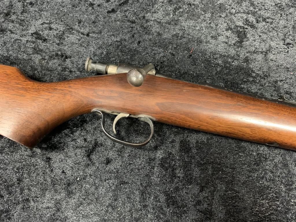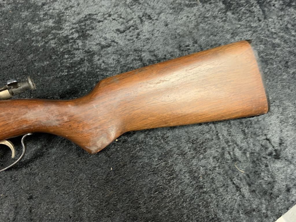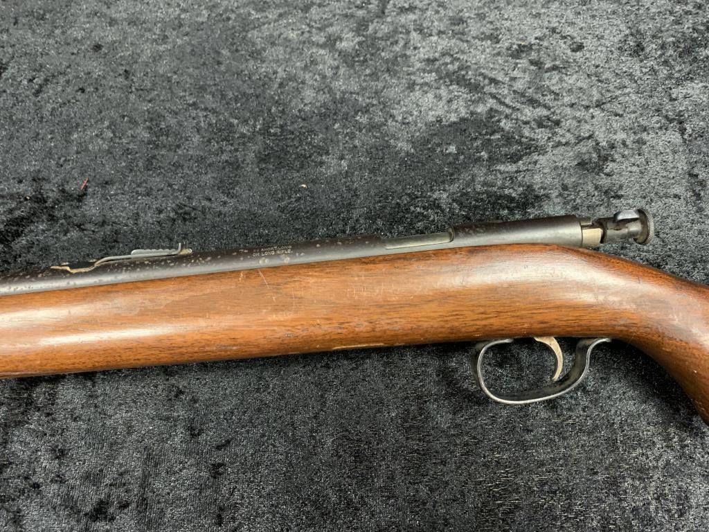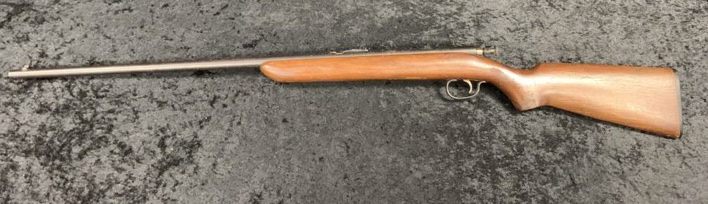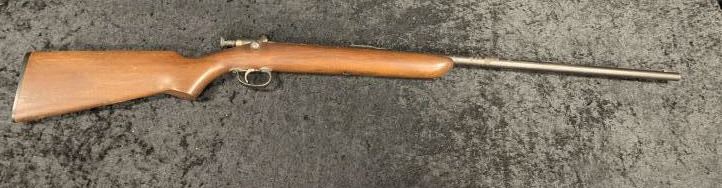Remington Model 41 Target Master bolt action single shot rifle, .22 Short, Long or Long Rifle caliber, Serial #197730. The rifle is in good overall condition with a 27” barrel. The rifle has gone to a dark patina withlight to moderate surface pitting on the barrel. The smooth wood stock is in good condition with small mars and dents. The bore is fair and the action functions. Est.: $50-$100. (C+R).
