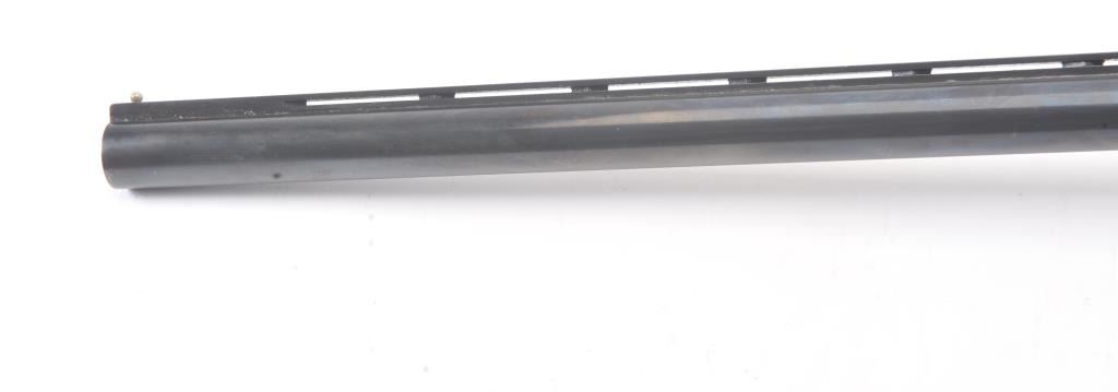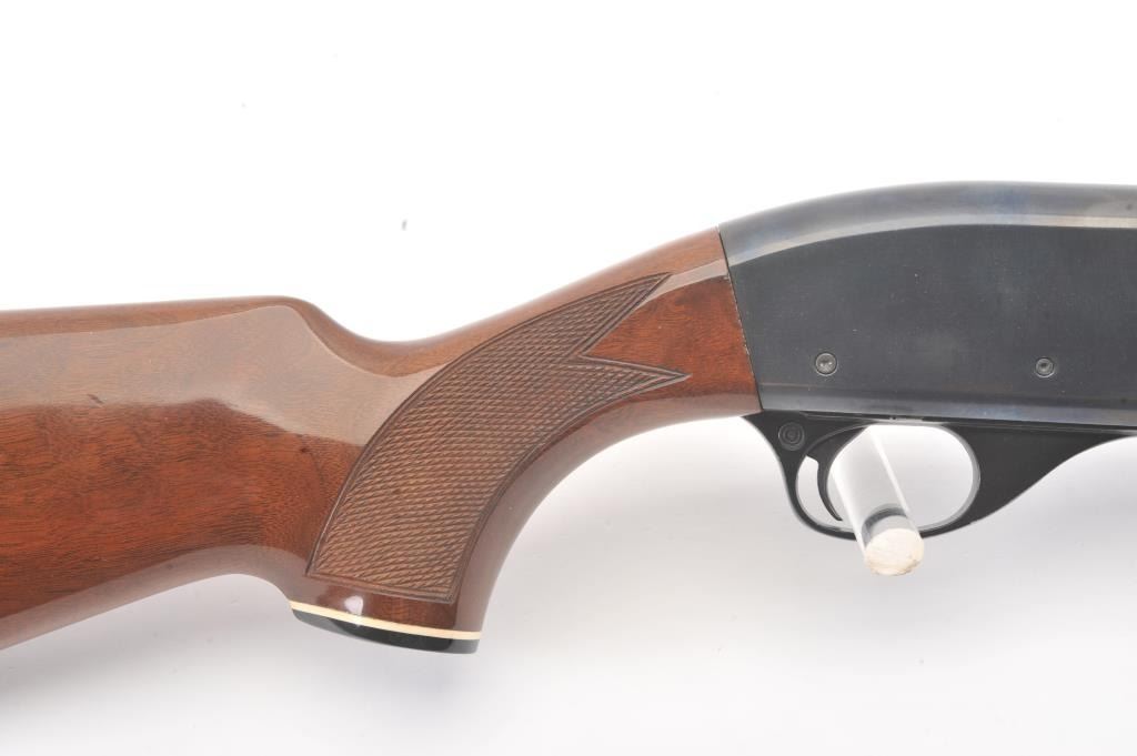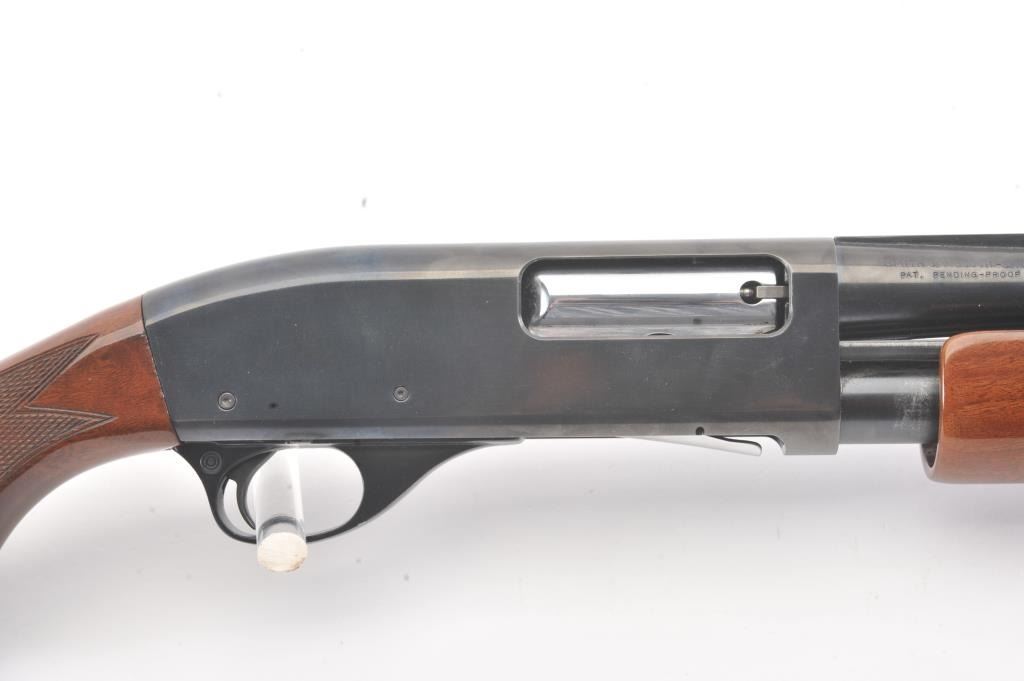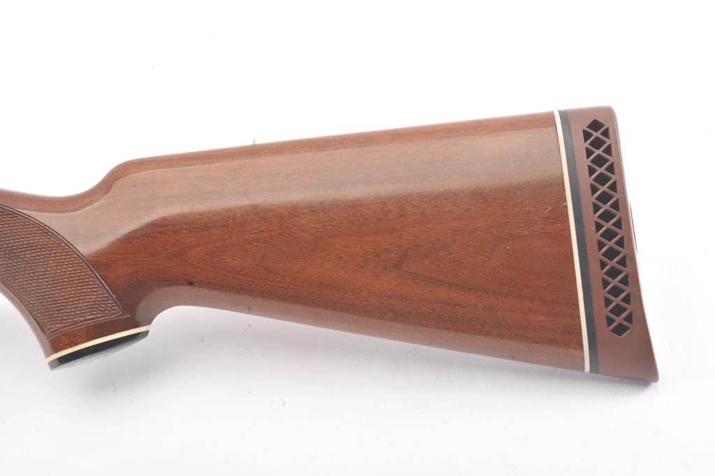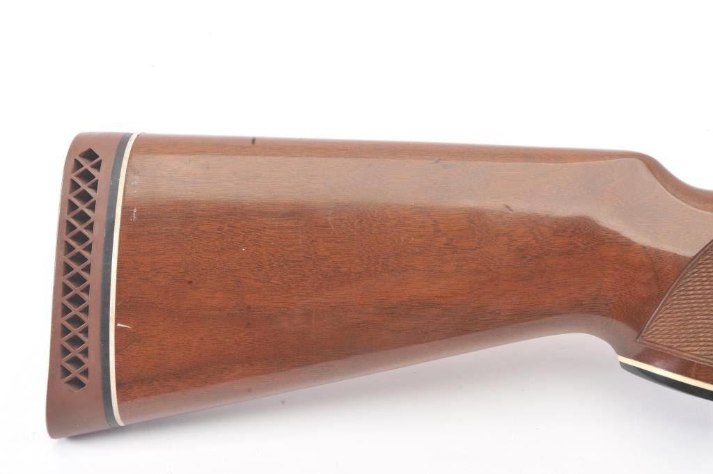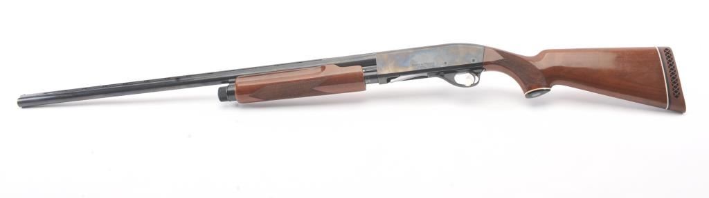 Smith & Wesson Model 3000 pump shotgun, 12 gauge, Serial #FC35327. The shotgun is in fine overall condition with a 30” barrel with a full-length ventilated rib. The shotgun retains nearly all of the blue finish with asteel bead front sight. The shotgun is choked “Full” and chambered for 3” shells. The checkered wood stocks are in very good conditions with small mars and scrapes consistent with field use. The butt stockends with a ventilated rubber recoil pad providing a 14 ¼” LOP. The bore is good, the action is crisp and the markings are sharp. Est.: $200-$400. (Modern).