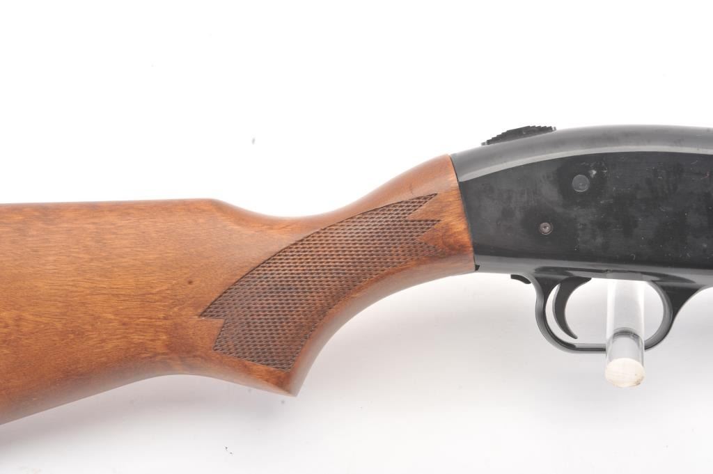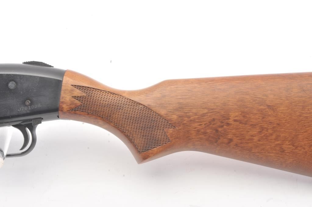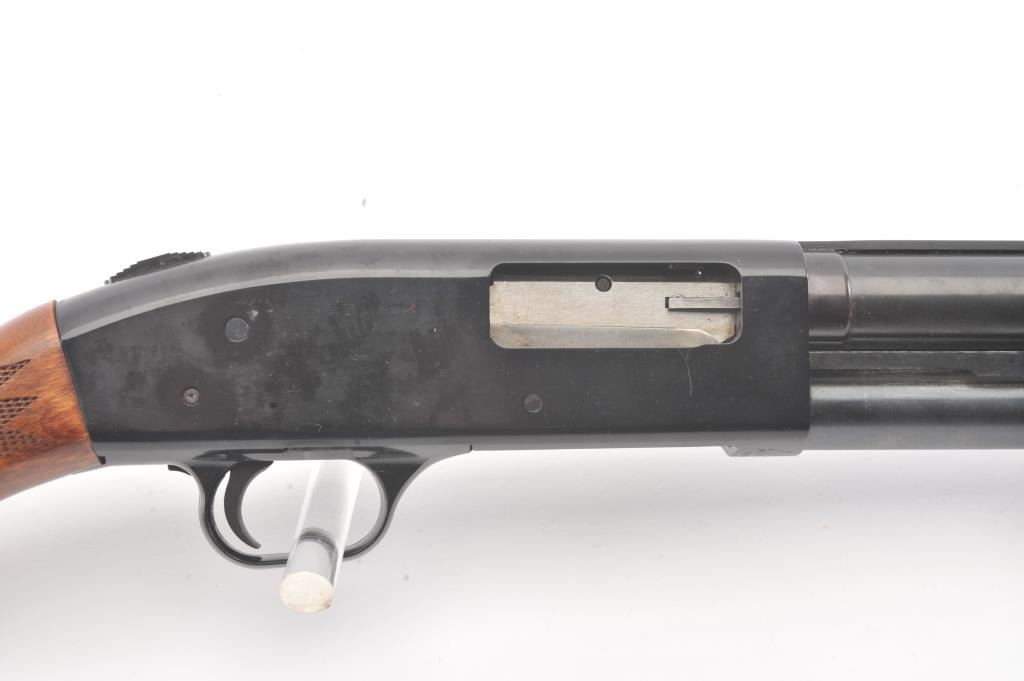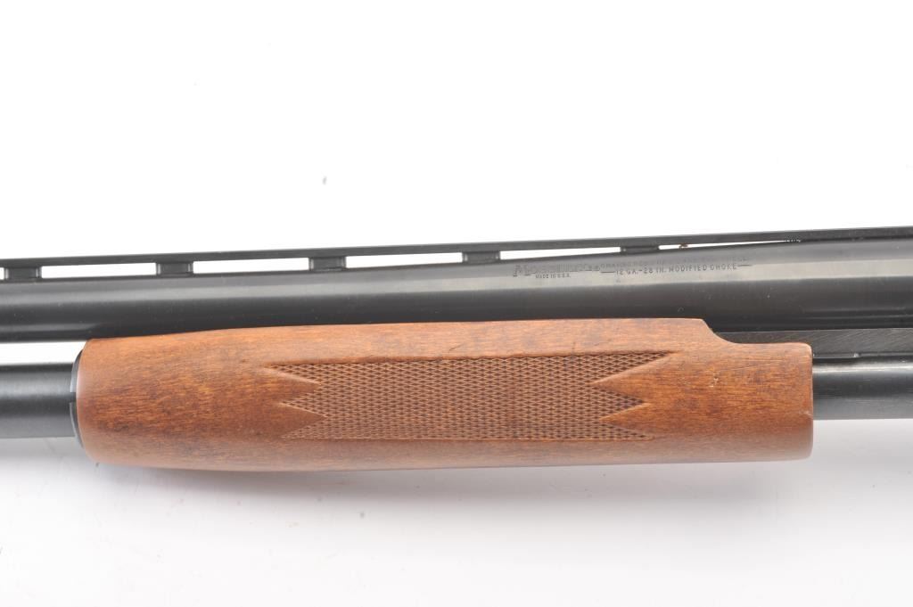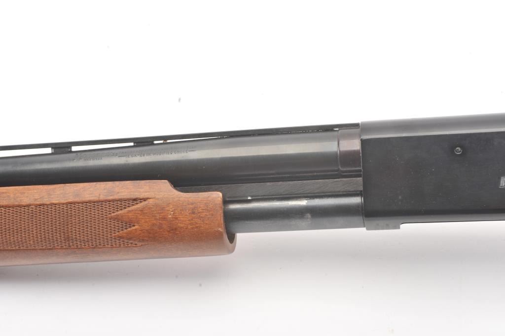Mossberg Model 500A Ducks Unlimited pump shotgun, 12 gauge, Serial #J761036. The shotgun is in fine overall condition with a 28” barrel with a full-length ventilated rib and brass bead front sight. The shotgunretains nearly all of the blue finish with light handling marks. The left side of the receiver is marked, “DUCKS UNLIMITED 10/30”. The shotgun is choked modified and chambered for 2 ¾” or 3” shells. The smooth woodstocks are in very good conditions with small mars and scrapes consistent with field use. The butt stock ends with a ventilated rubber recoil pad providing a 14” LOP. The bore is good, the action is crisp and the markingsare sharp. Est.: $200--$400. (Modern).