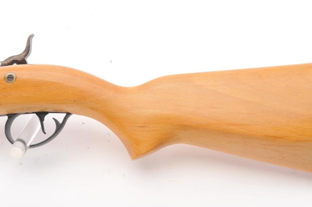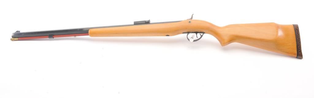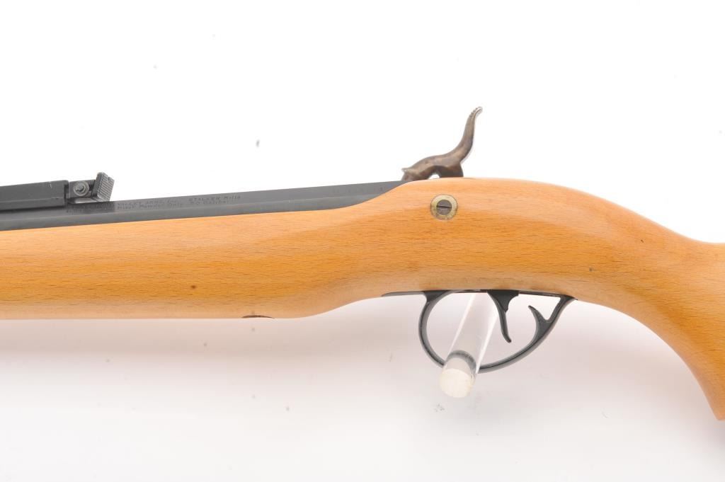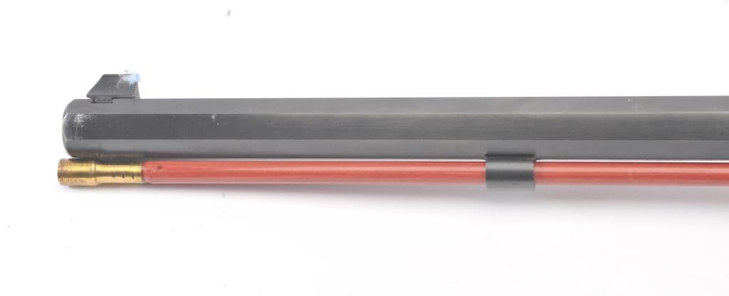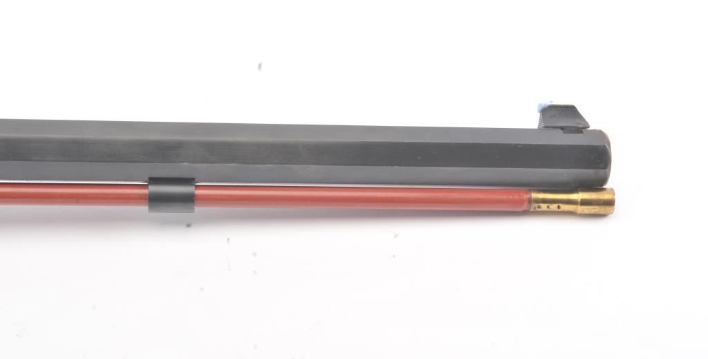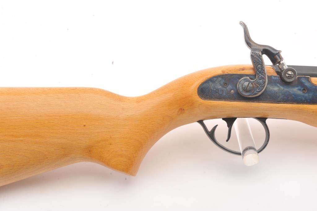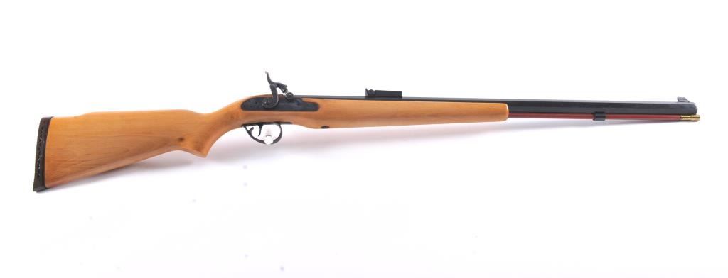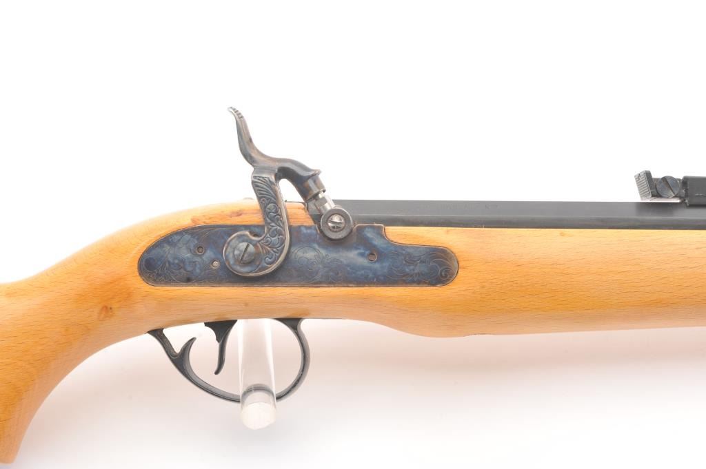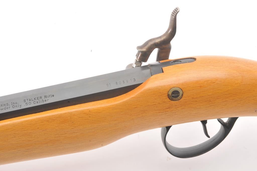CVA Stalker black powder single shot rifle, .50 caliber, Serial #805613. The rifle is in excellent overall condition with a 28” octagon barrel with full-length ramrod, blade front and adjustable rear sights. Thebarrel retains nearly all of the blue finish with sharp edges. The side plate and hammer are nicely case colored. The smooth wood stock is in very good condition with a ventilated rubber recoil pad. Est.:$125-$250.