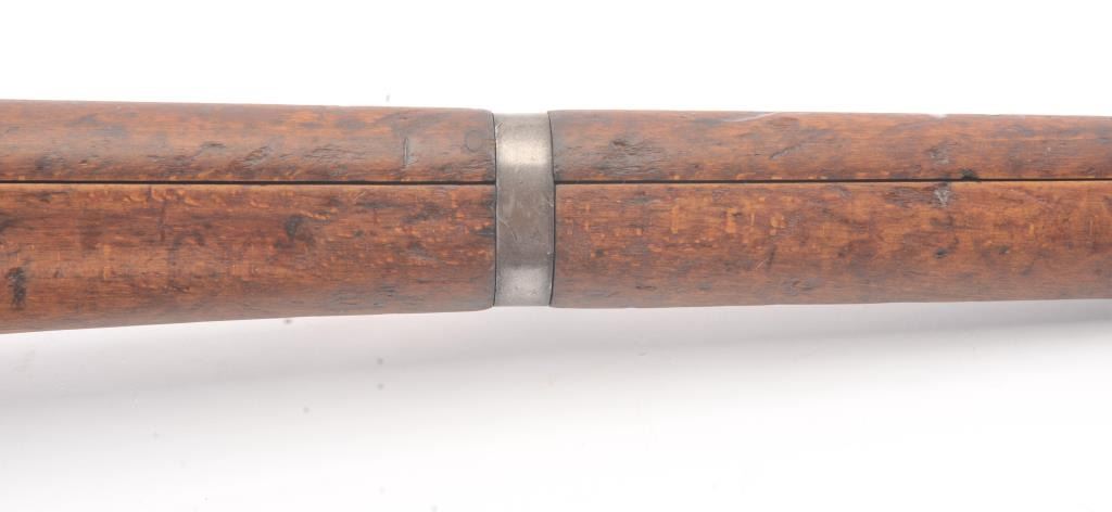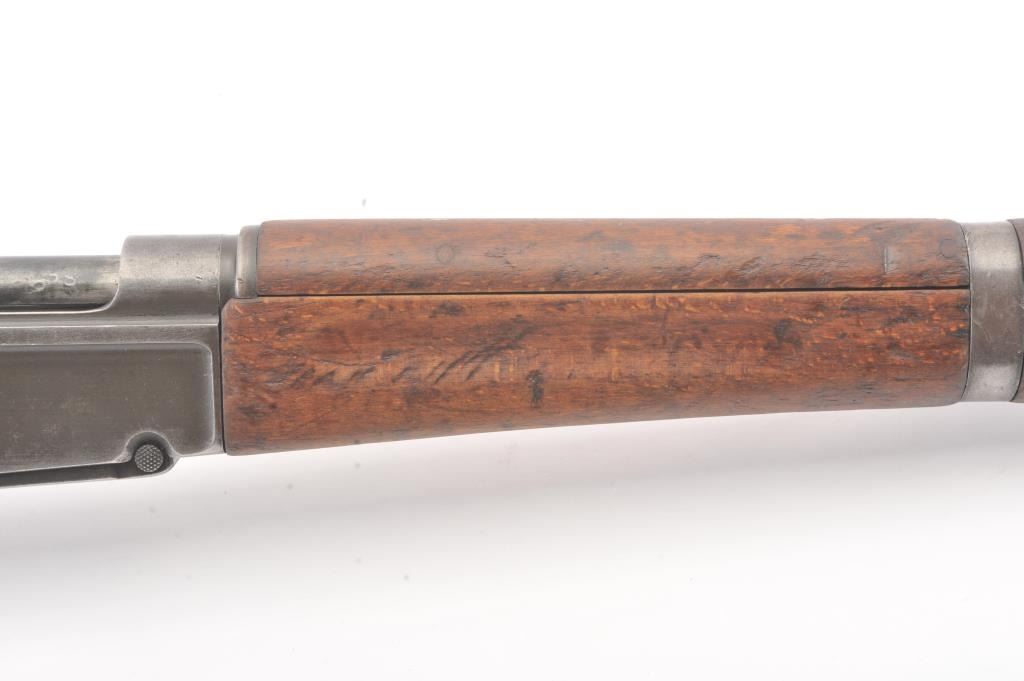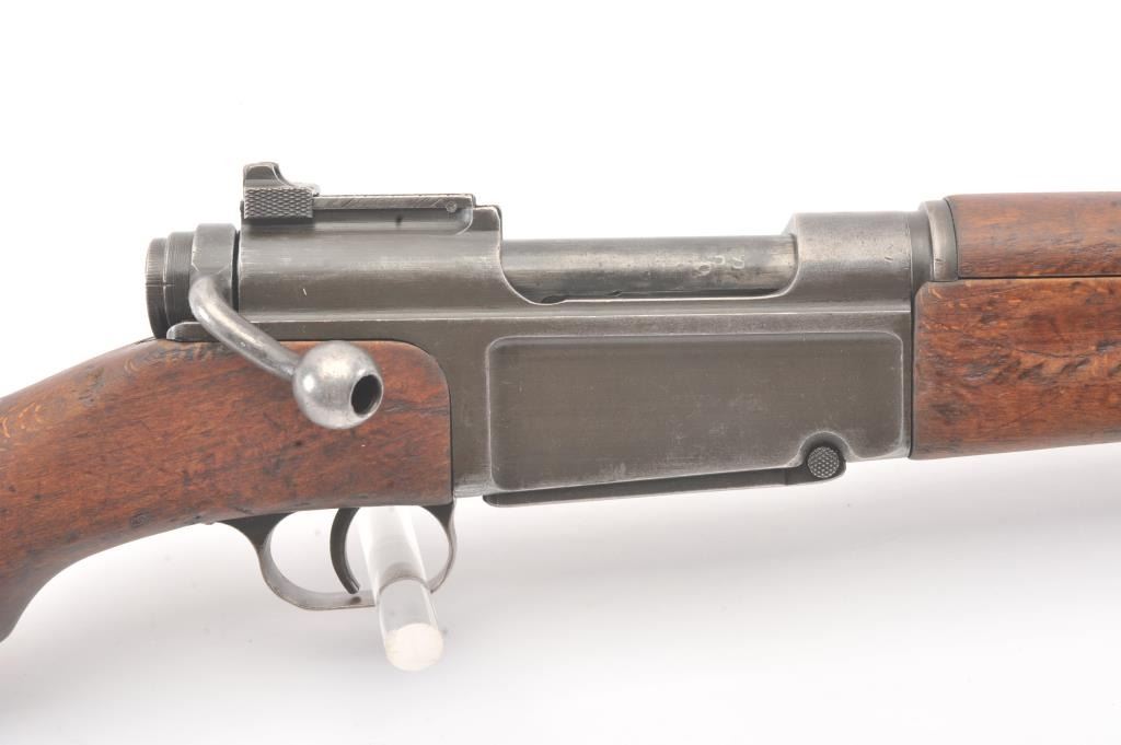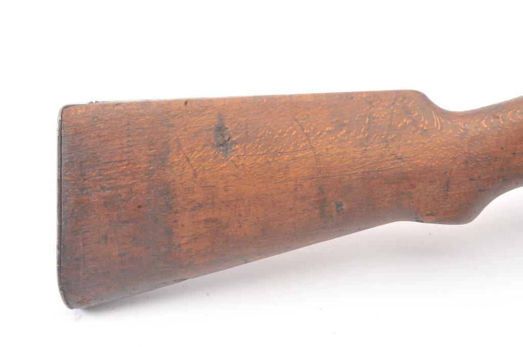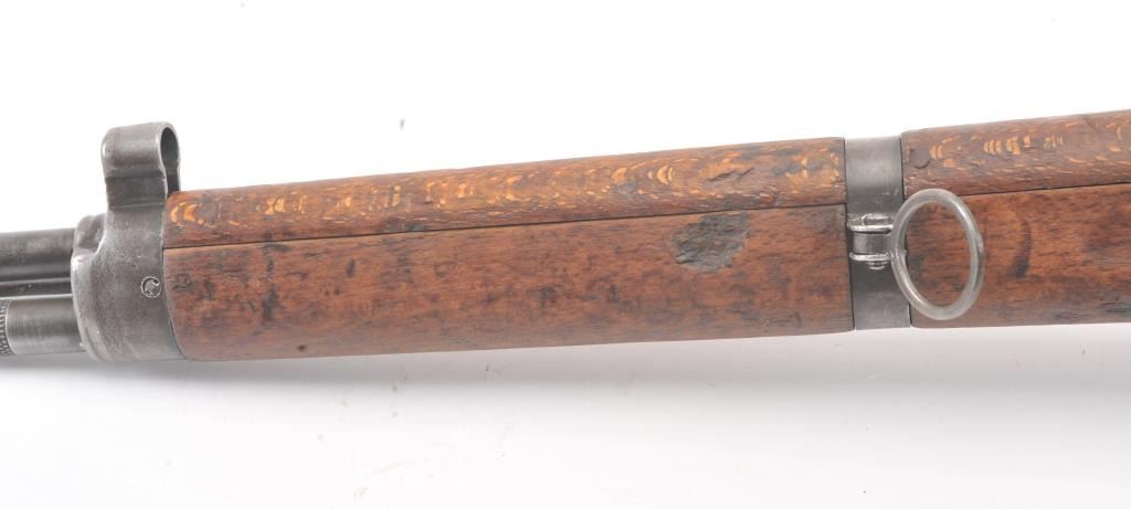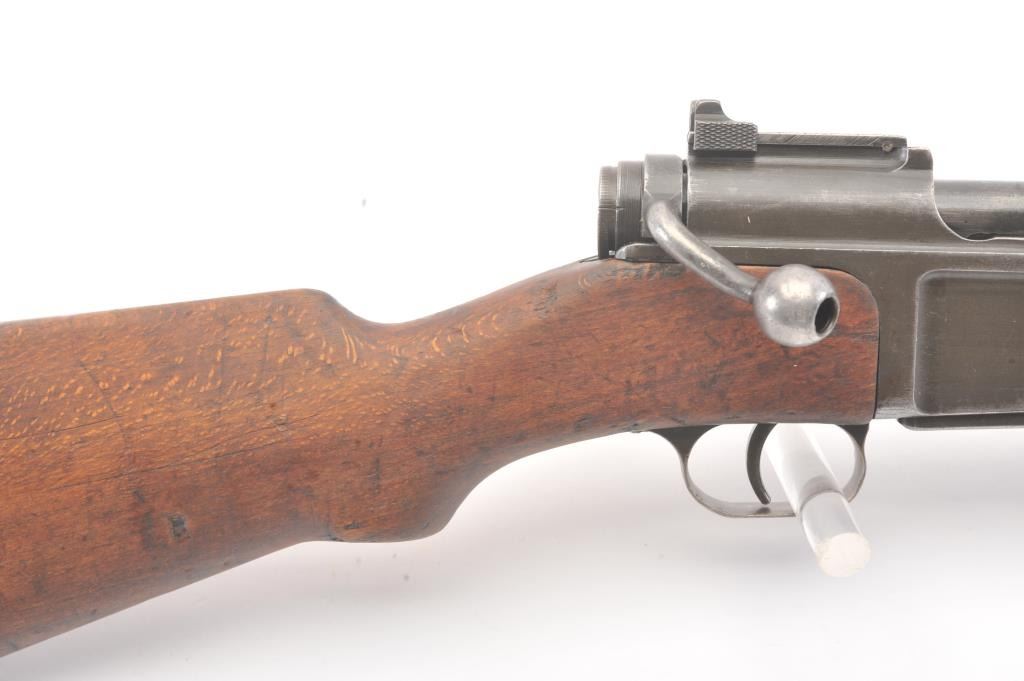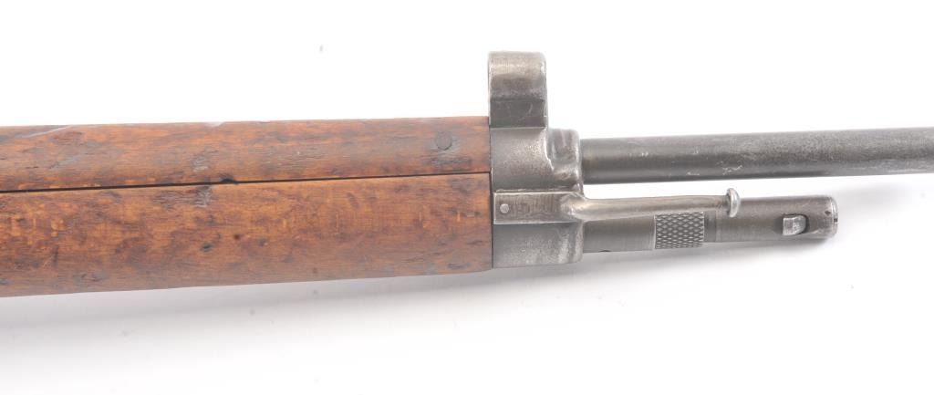 French MAS Model 1936 bolt action rifle, 7.5 French caliber, Serial #FH11705. The rifle is in good overall condition with a 23” barrel. The rifle retains a significant amount of military finish with moderate wearfrom carry and use. The receiver is marked France and import marked on the left side. The smooth wood stock is in good condition showing heavy use with dents, mars and pressure bruises consistent with militaryservice use. The stock has sling swivels and ends with a smooth steel butt plate. The bore is fair, the action is crisp and the markings are sharp on this WWII era MAS. Est.: $200-$400. (C+R).