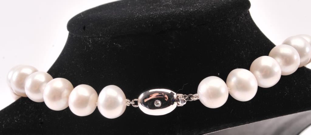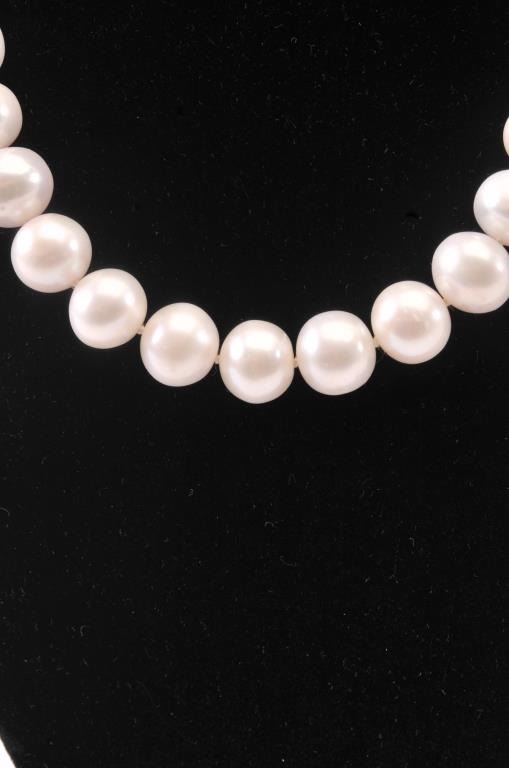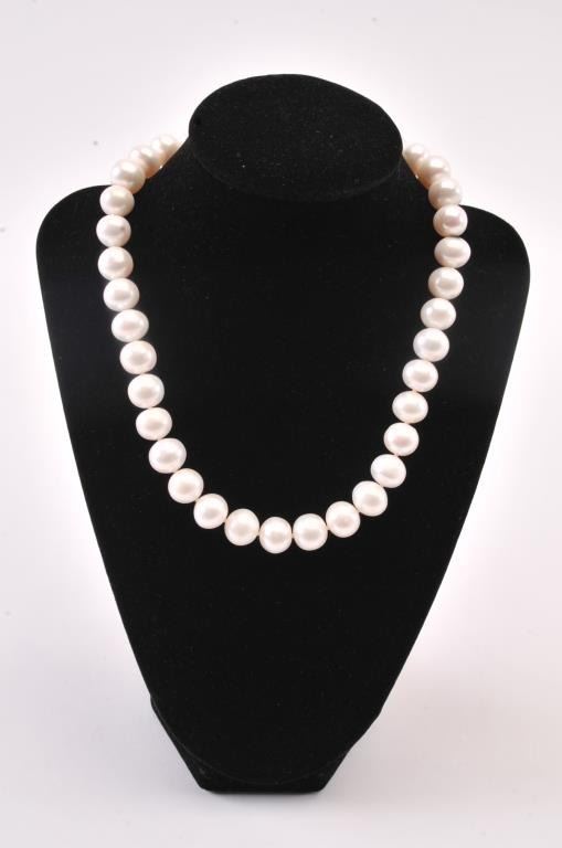 One strand of fine quality white pearls with pinkish tone measuring approx. 12mm Est:$125-250