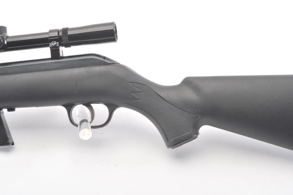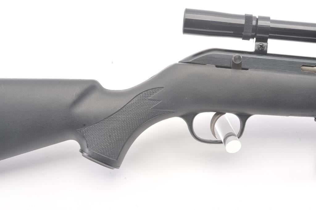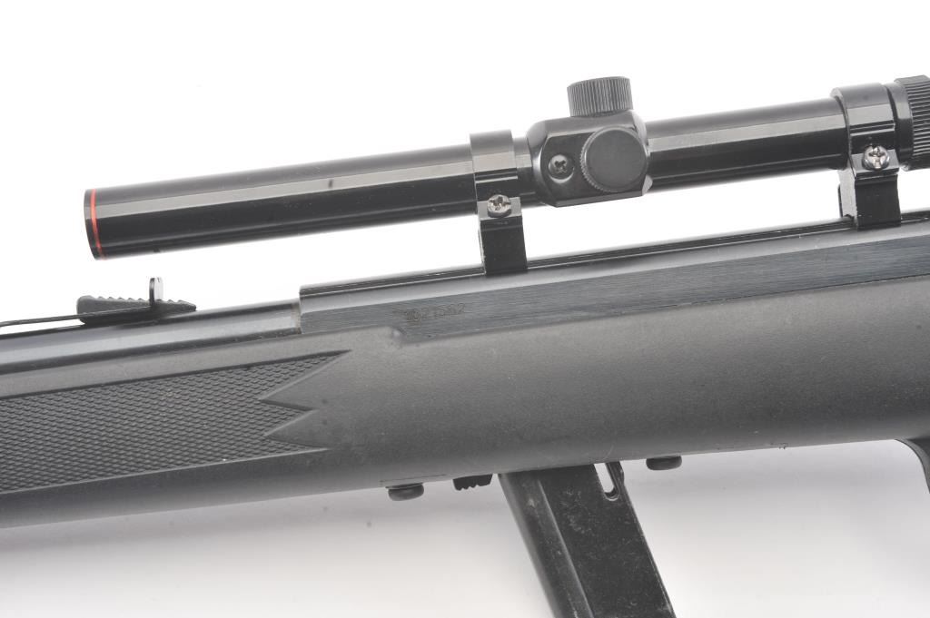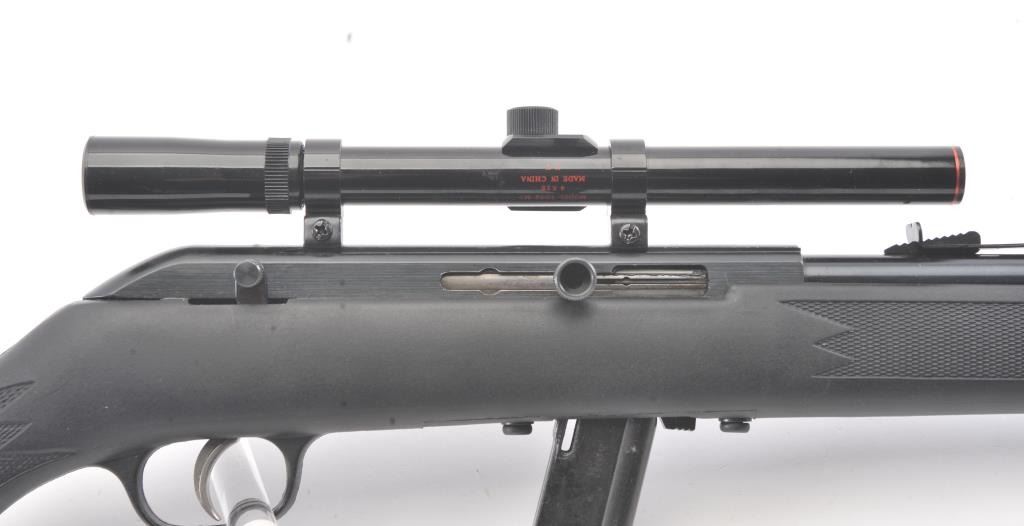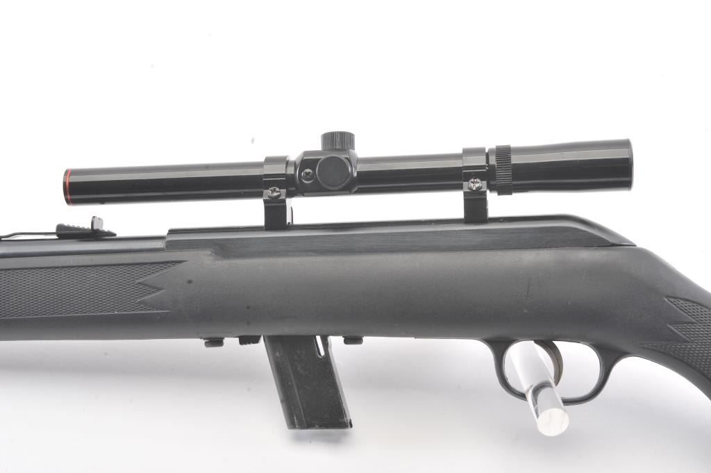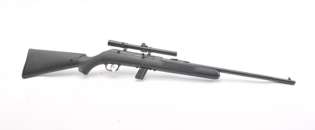 Savage Model 64 Semi-Auto rifle in .22 L.R. only with Simmons scope, S/N 1021562. Canadian made Pre-statist era in near fine condition. “What happened to our gun rights eh?” Est.: $125-$250