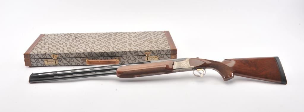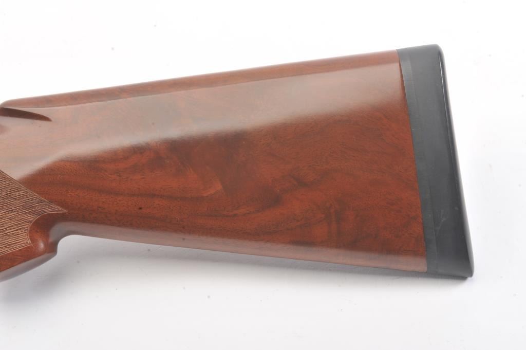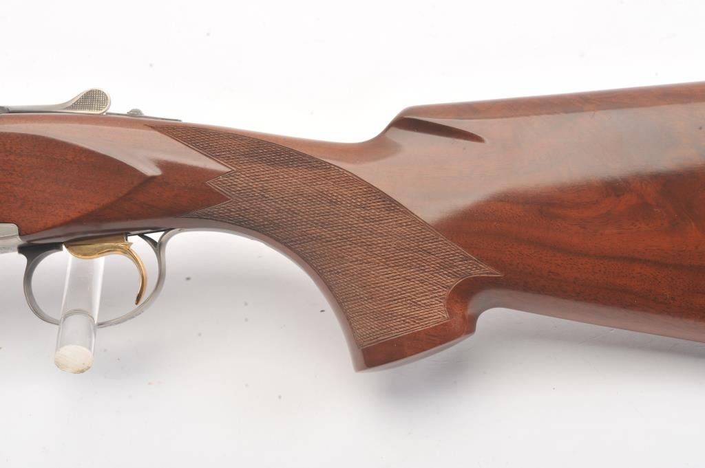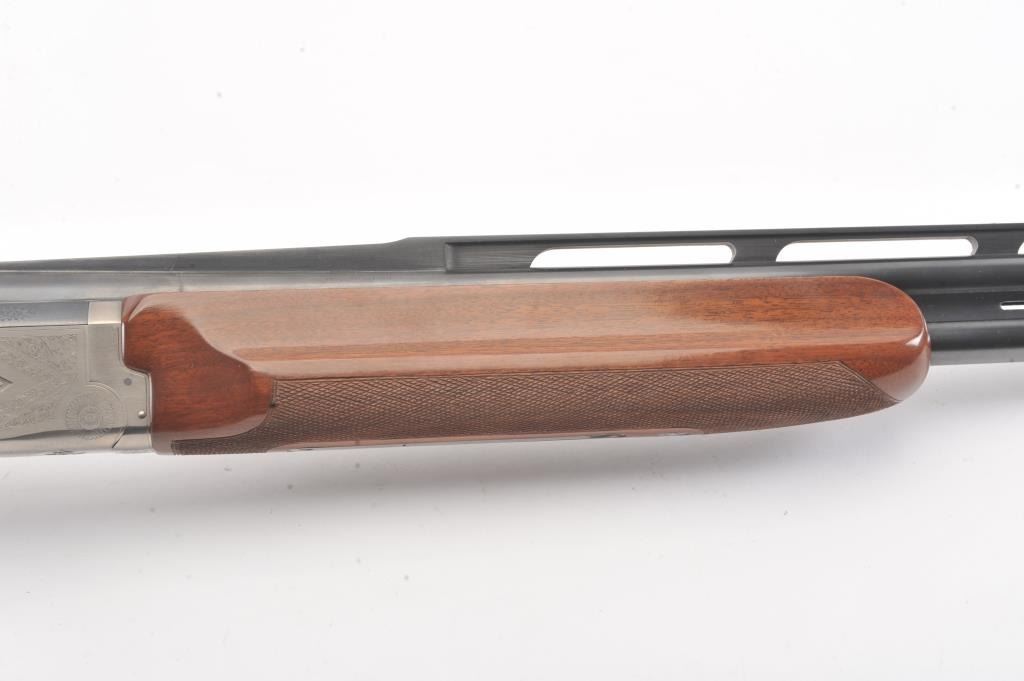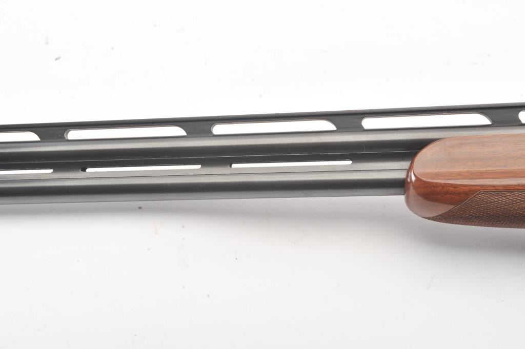 Winchester Diamond Grade Skeet O/U shotgun, #DG280293E, 28 gauge, 2-3/4” chambers, 27-1/2” ventilated rib barrels, blue finish with engraved bright receiver, single trigger, checkered wood stocks with hardrubber butt pad, length of pull 14-3/8”. This gun is in overall excellent condition showing approx. 98% + original finish with minty bores, crisp action, sharp markings and beautifully grained fine wood stock; alovely Diamond Grade Winchester that has been well-cared for. Includes Winchester Diamond Grade hard case in very good condition. (Modern/PPT) Est.: $1000-2000