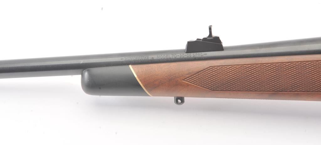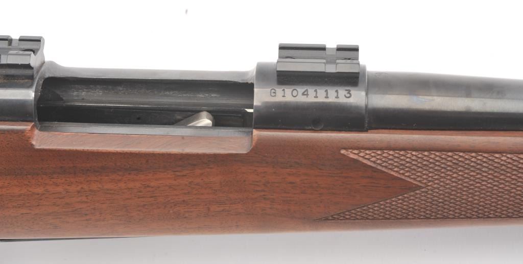 Winchester Model 70 in .30-06 caliber bolt action rifle with a 22” barrel and post ’64 scope mounts. Very good used condition, S/N G1041113. Missing Bolt. (Modern) Est.: $150-$300