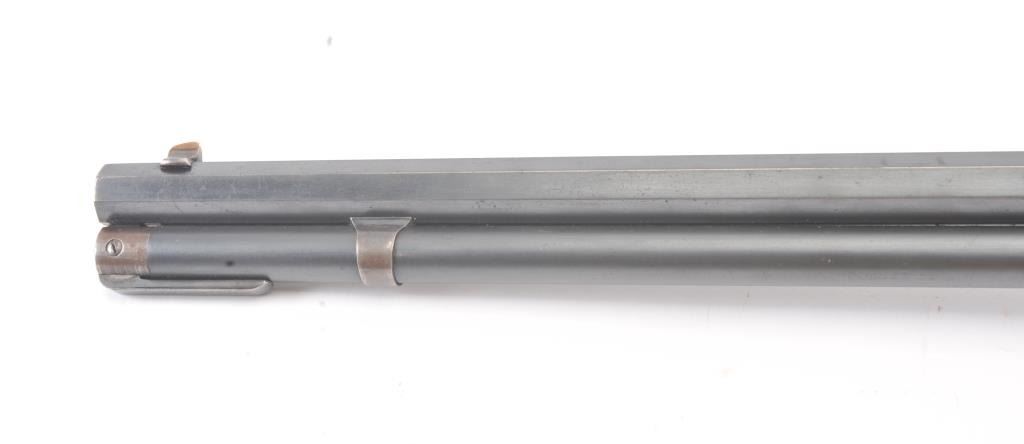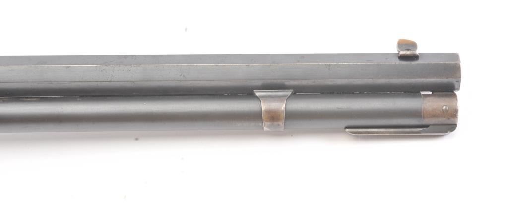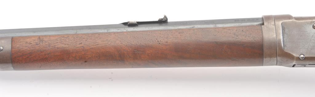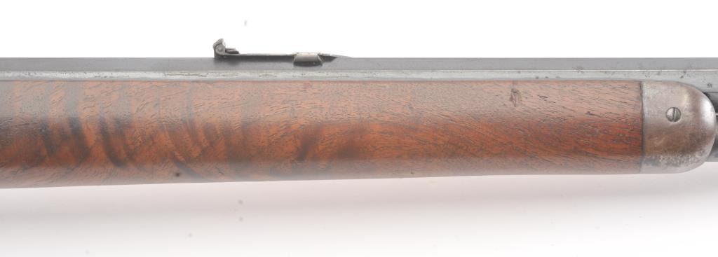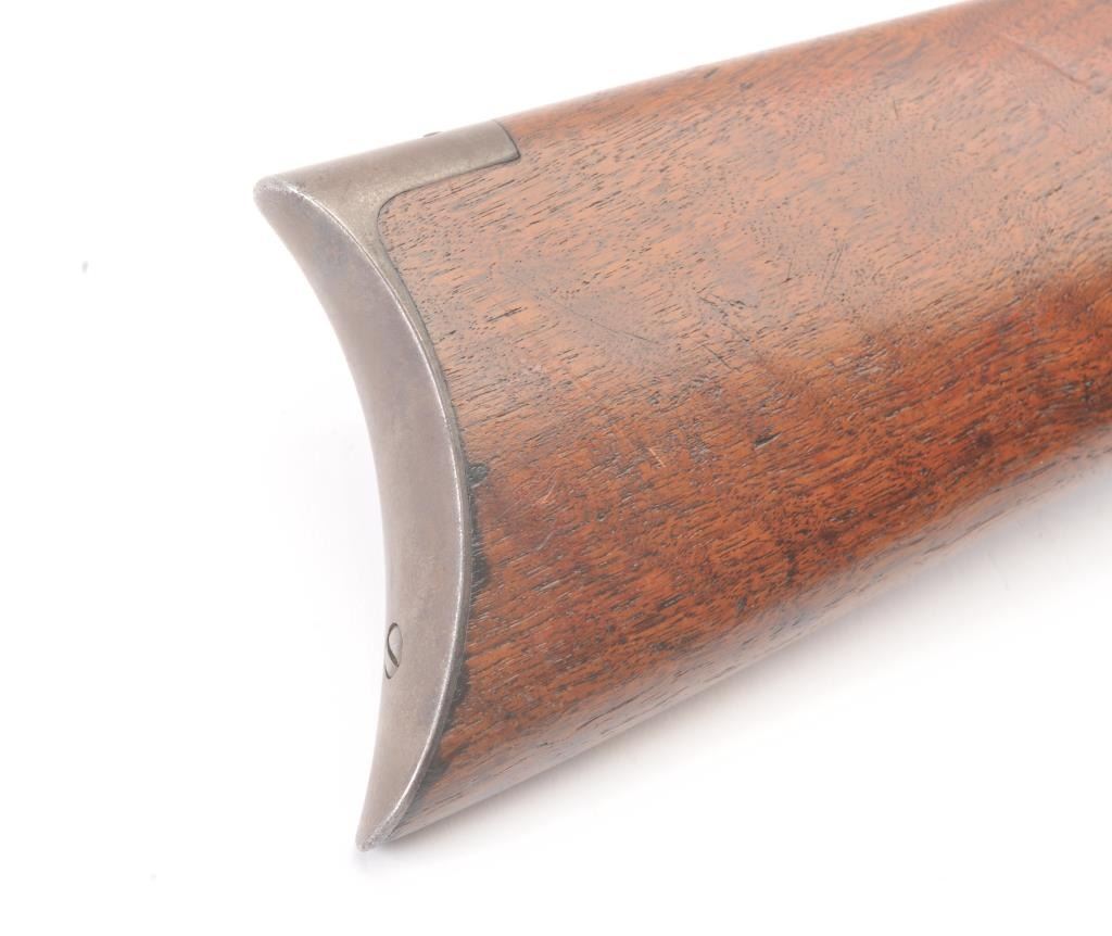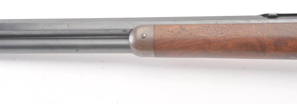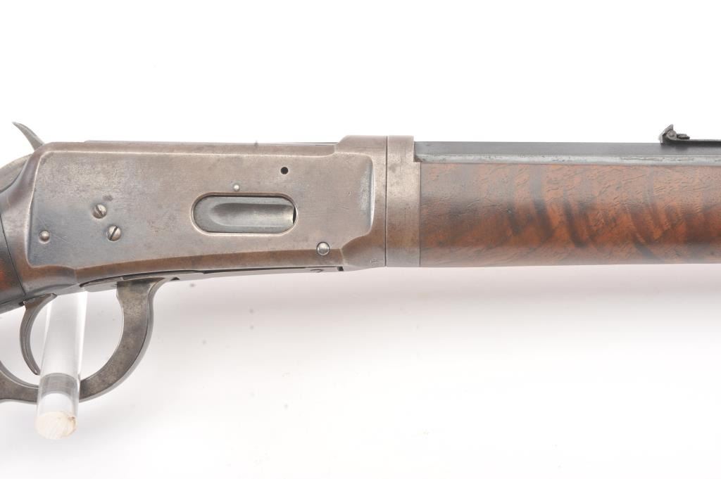 Winchester 1894 Lever Action Takedown Rifle in .25-.35 W.C.F. caliber with a 26” octagon barrel, blue finish, walnut stock, crescent butt, and 3 leaf rear sight, S/N 428628. This rifle remains in very good condition showing 80%-90% of its original blue remaining on the barrel and magazine tube with wear on the edges along with some pinprick pitting on the barrel and tube. The frame shows considerable amount of blue remaining turning to a brown/plum patina. The action is tight and the bore is very good. There is some “Play” where the barrel and frame lock up. (C&R) Est.: $1400-$2800