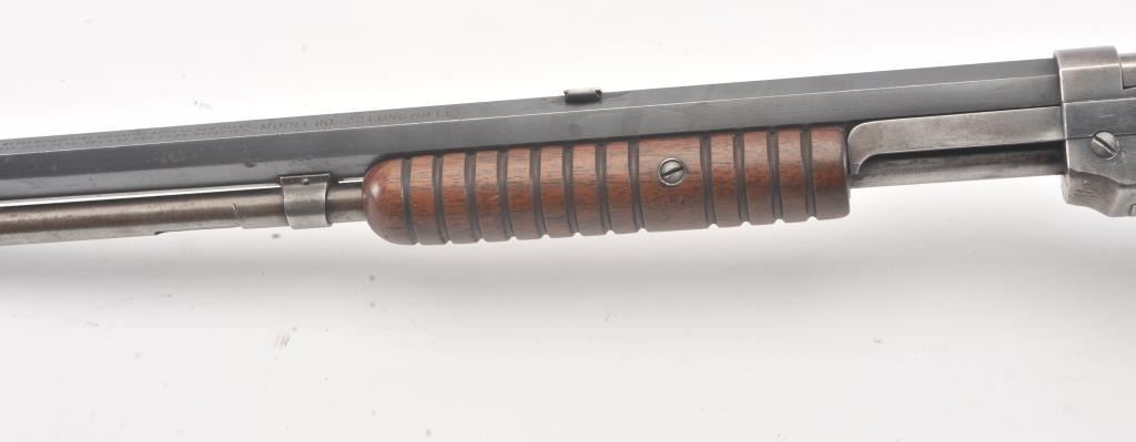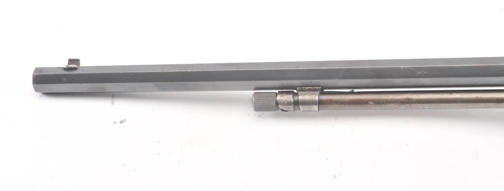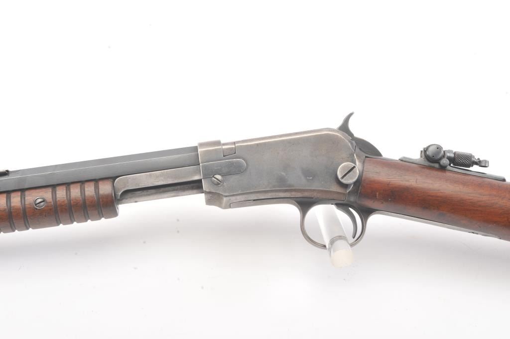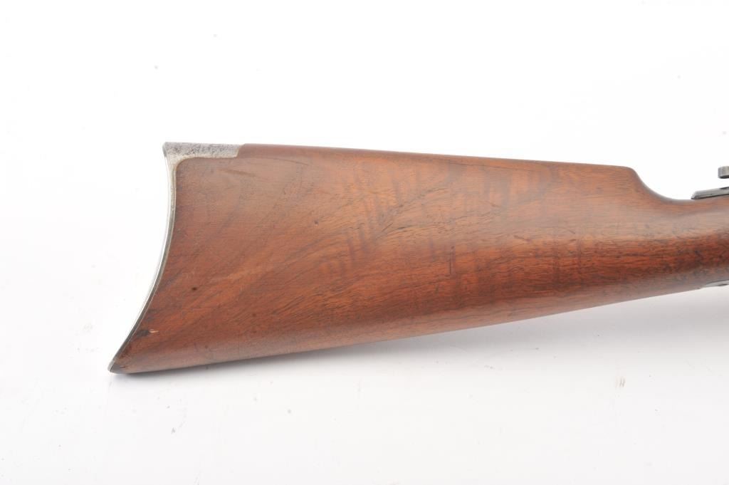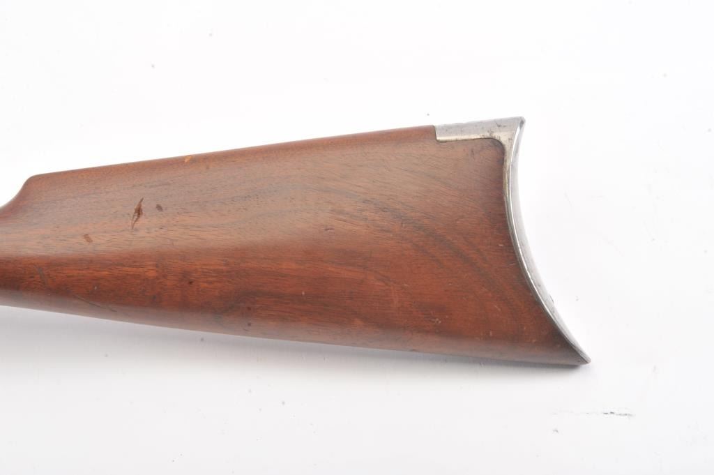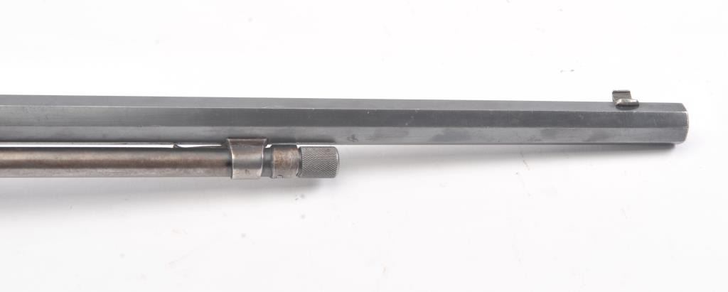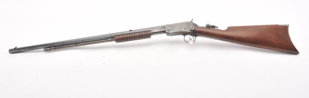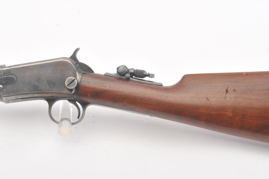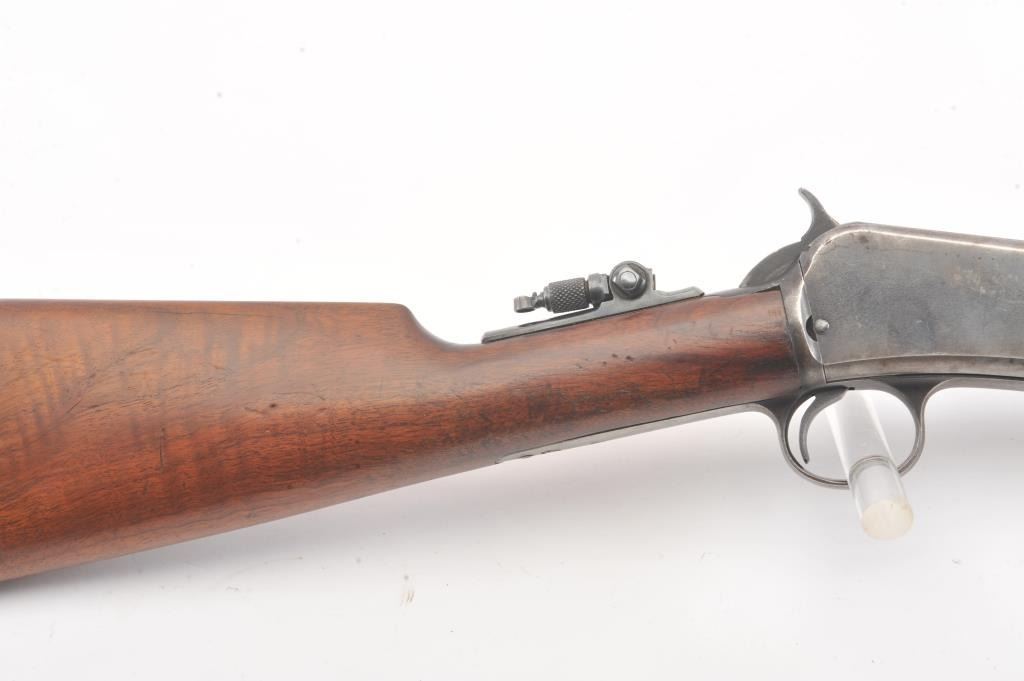 Winchester Model 90, #5A (renumbered, possibly by the factory), .22 LR cal., 24" octagon barrel, blued finish, tang sight, with smooth walnut stock. The rifle is in very good to fine condition overall, havingbeen rebarreled by the factory. It retains 90%+ blue, 60% original blue remaining on the frame. Very good bore, tight action, very good stock with some nicks and dings, slightly proud in several areas. (C&R) Est. $800-1600