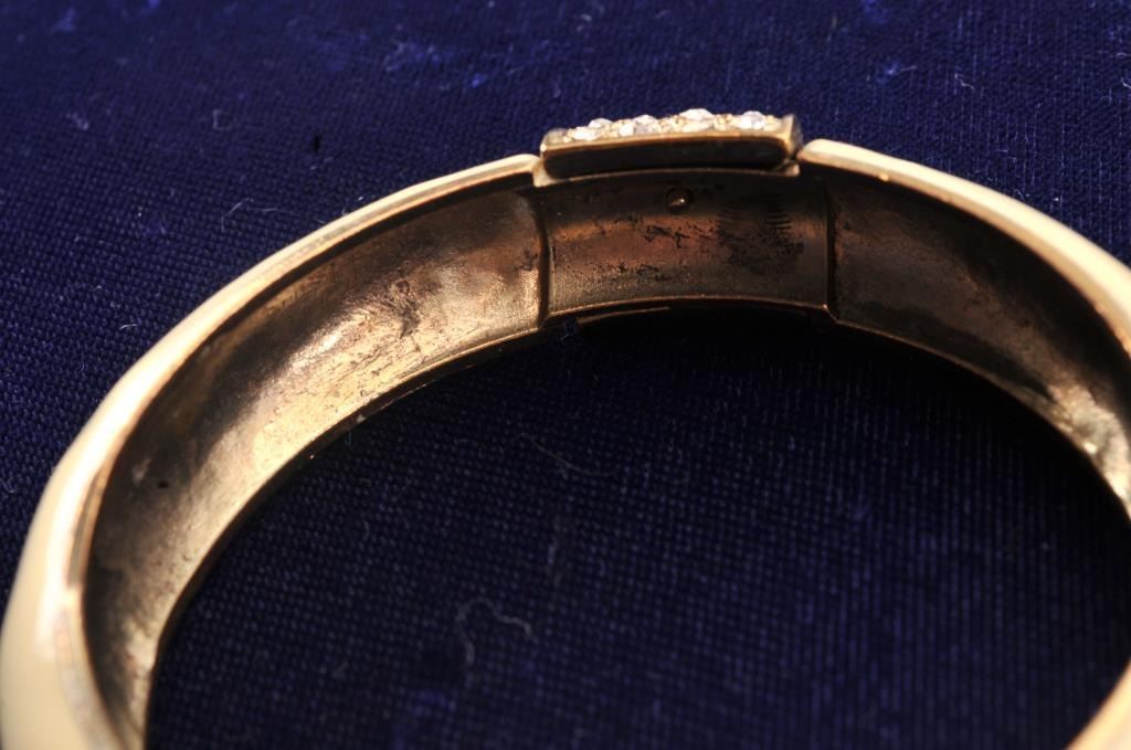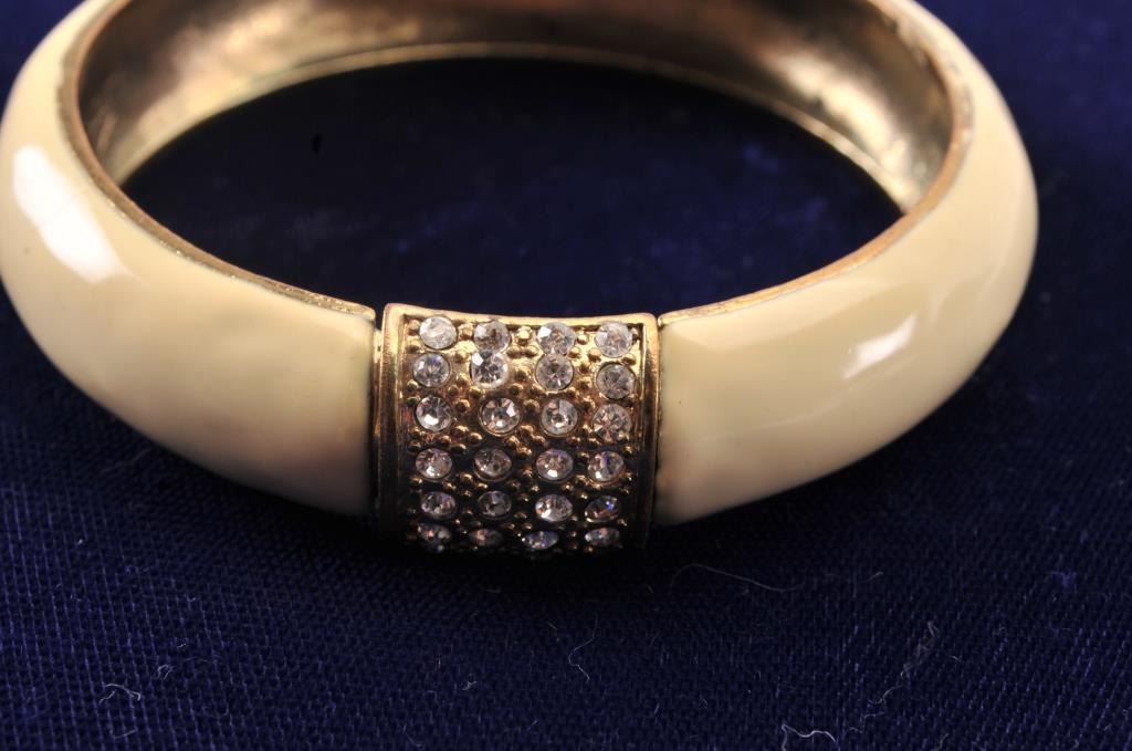 One fine ivory like enameled bangle bracelet in base metal Est:$25-50