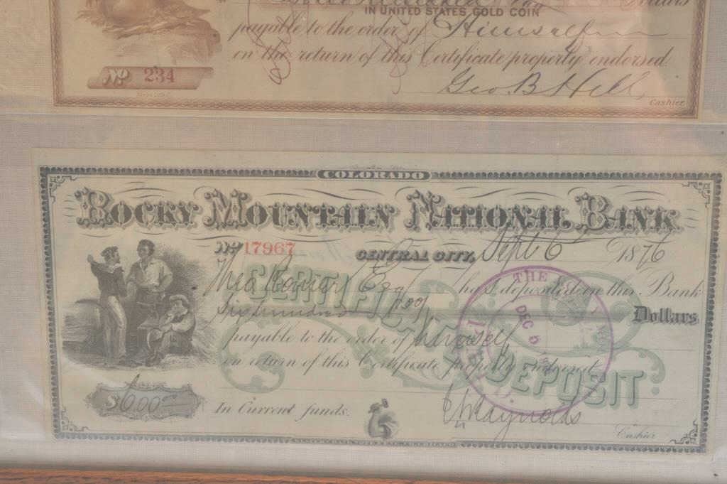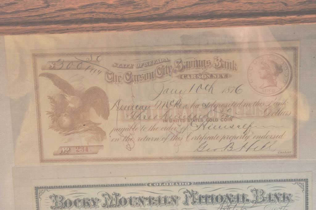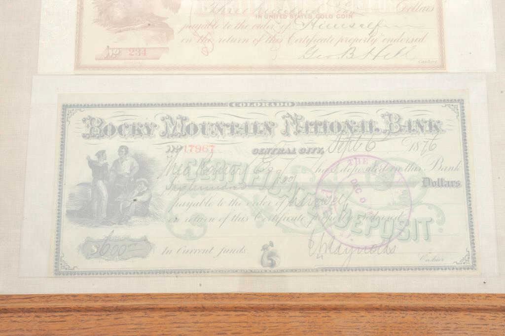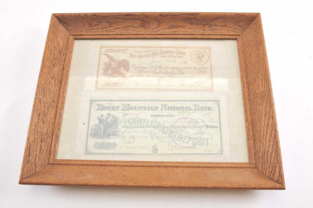 Framed lot of 2 1876-dated bank drafts; great artwork! Est.: $100-200