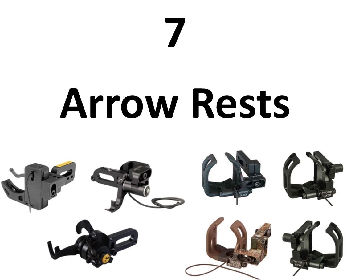 7 x Arrow Rests, 3 x Trophy Ridge Rests, 1-Drop Zone RH, 1-Drop Shot RH, 1-Revolution Fall Away RH, 4 x Trophy Taker X-Treme Rests, FC RH Black, FC RH Camo, SL RH Black,SL LH Black