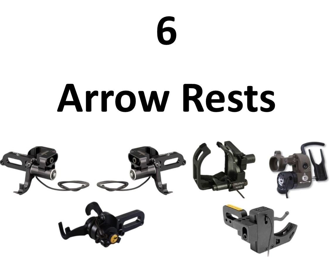 6 x Arrow Rests, 3 x Trophy Ridge Rests, 1-Drop Shot RH, 1-Drop Shot Black LH, 1-Revolution Fall Away RH, 1-Trophy Taker RH, 1-Elite QAD Patriot Brown LH, 1-Drop Zone Rest LH