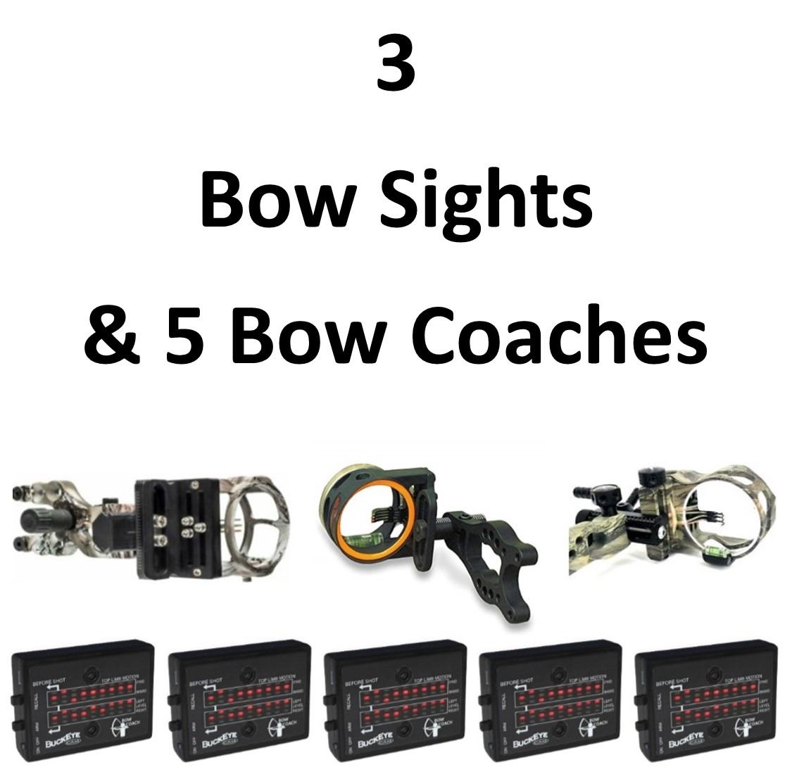 3 x Sights & 5 x Bow Coaches, Soul Hunter 3 Pin Lost Camo AT, Grave Dancer 3 pin .019, G5 Optix SE .029 LH