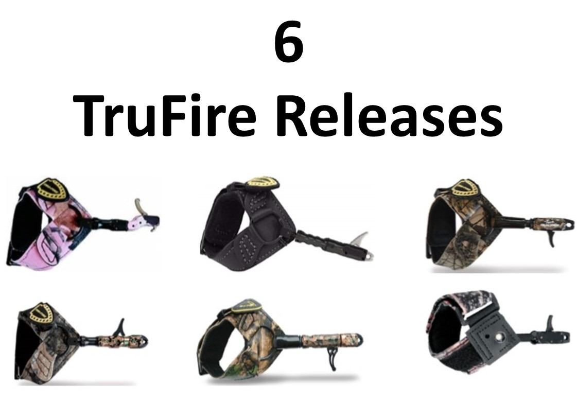 6 x TruFire Releases, Hardcore Buckle Foldback Pink, Smoke Buckle, Hurricane Buckle w/Foldback Black, 360° Buckle Foldback, 360° Extreme Buckle Foldback, Bullseye Junior