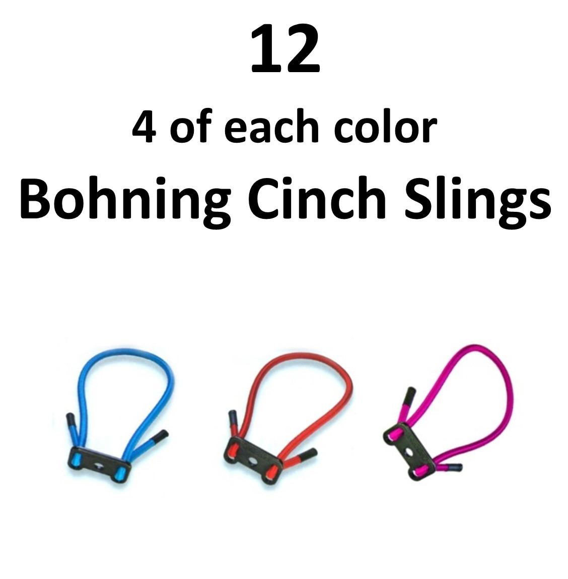 12 x Bohning Cinch Slings, 4-Red , 4-Blue, 4-Hot Pink