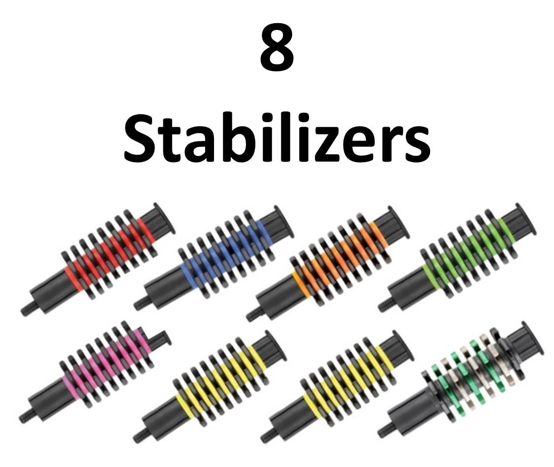 8 x Pine Ridge Sawtooth Stabilizers, Red, Blue, Orange, Lime Green, Pink, Camo, 2-Yellow