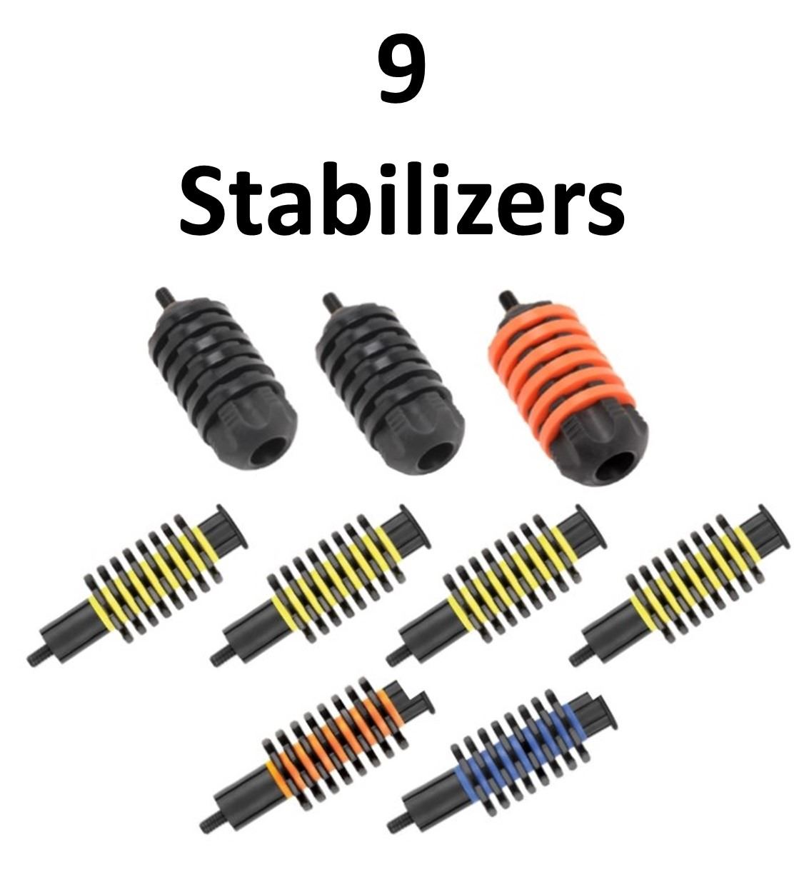 8 x Stabilizers, 3 x 30-06 "V", 2-Black, 1-Orange, 6 x Pine Ridge, 4-Yellow, 1-Orange, 1-Blue