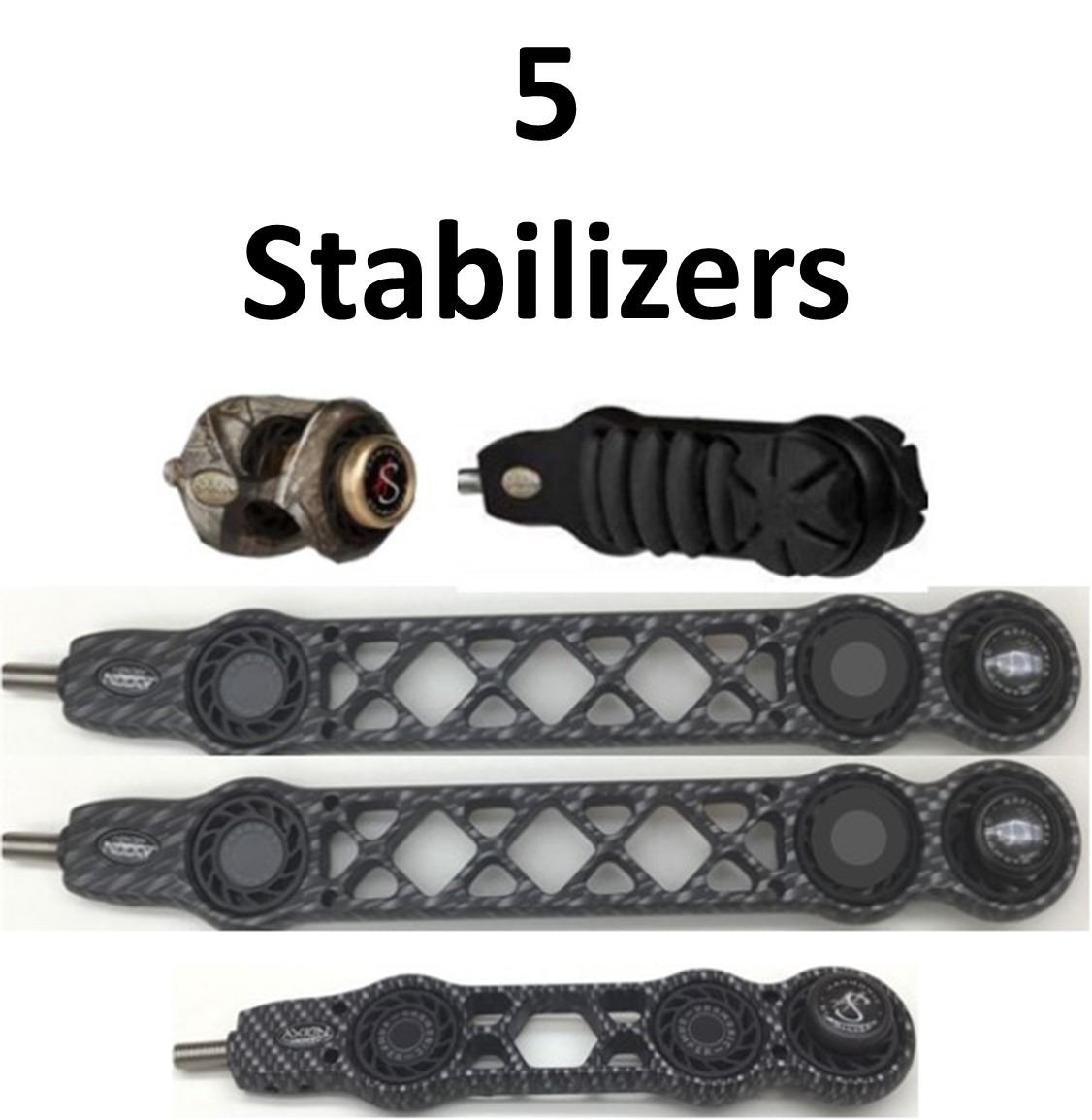 5 x Axion Stabilizers, Silencer 2" AP Camo, Omega 6" Black, GLZ 8" Grid Tact, 2-GLZ 11 Grid Tact