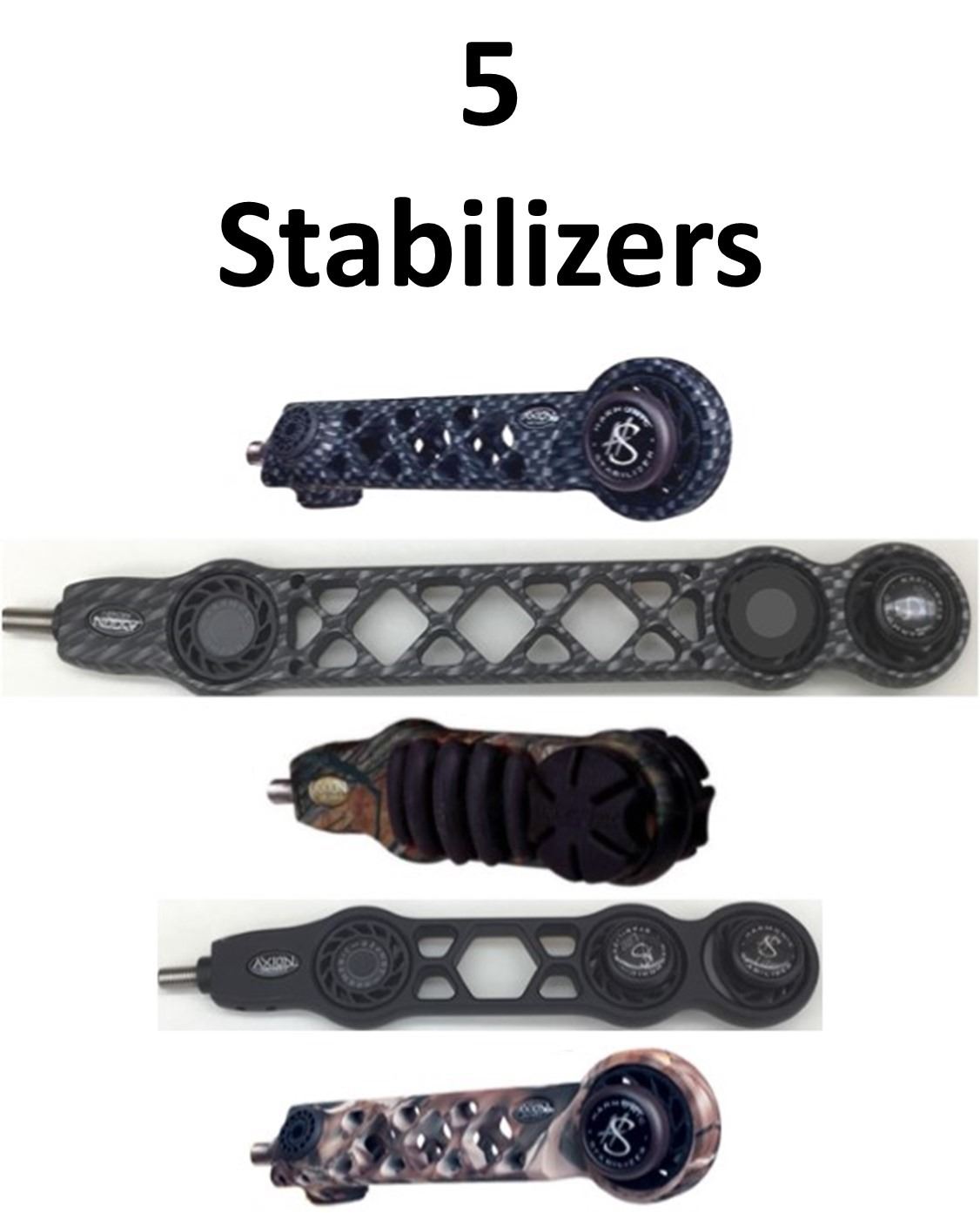 5 x Axion Stabilizers, Triad Lite Grid 6" Tact, GLZ 11 Grid Tact, Omega 8" Lost, GLZ 8" Lite 3-D Hunter Grid Black, Triad Grid 6" Lost