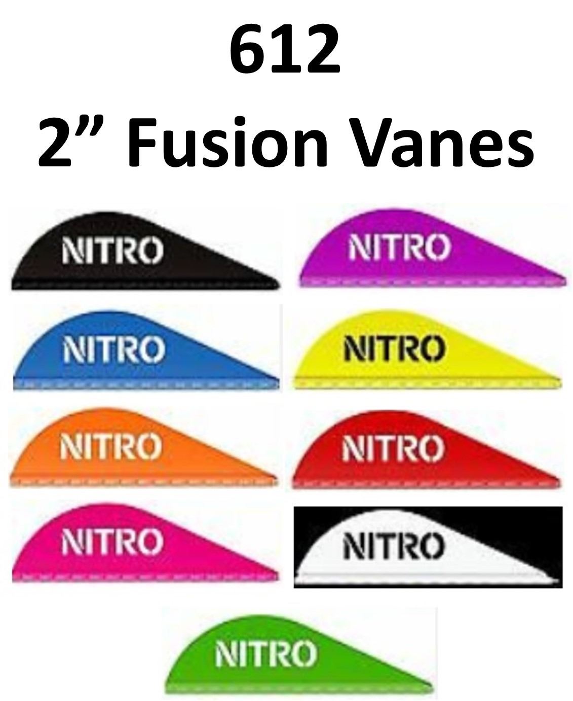 17 x 2" Fusion Vanes 36/pk, 1-Black, 2-Blue, 2-Neon Orange, 4-Neon Pink, 3-Purple, 2-Yellow, 1-Red, 1-White, 1-Neon Green