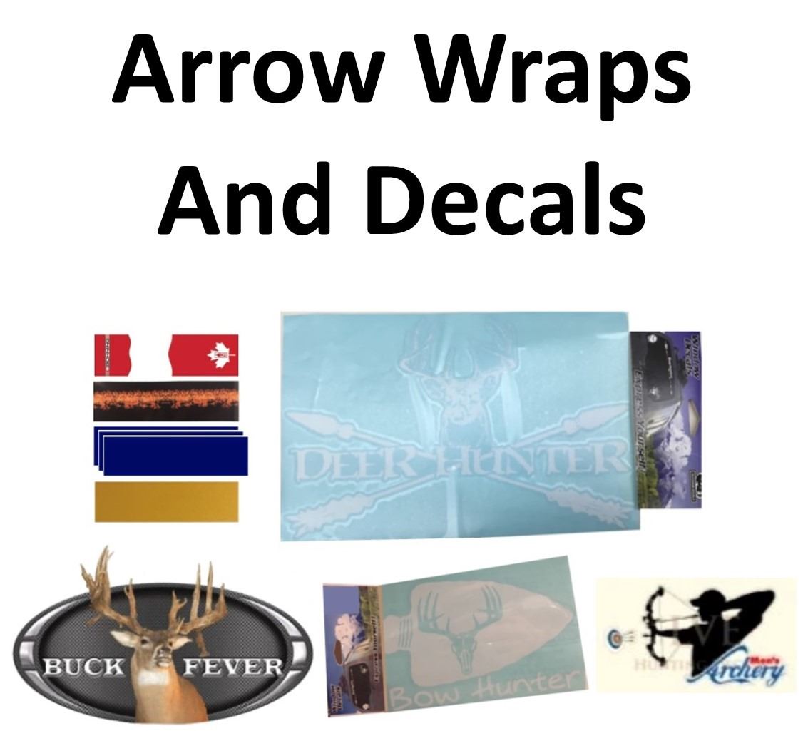 6 x Arrow Wraps & 4 x Decals, 1-4" Standard Canadian Flag, 1-Flux, 3-Dark Blue, 1-Metallic Yellow, 4 x Decals, 1-Deer Hunter White 7.5x12, 1-Buck Fever, 1-Bowhunter Arrowhead White 4x6, 1-Men's Archery Compound Bow
