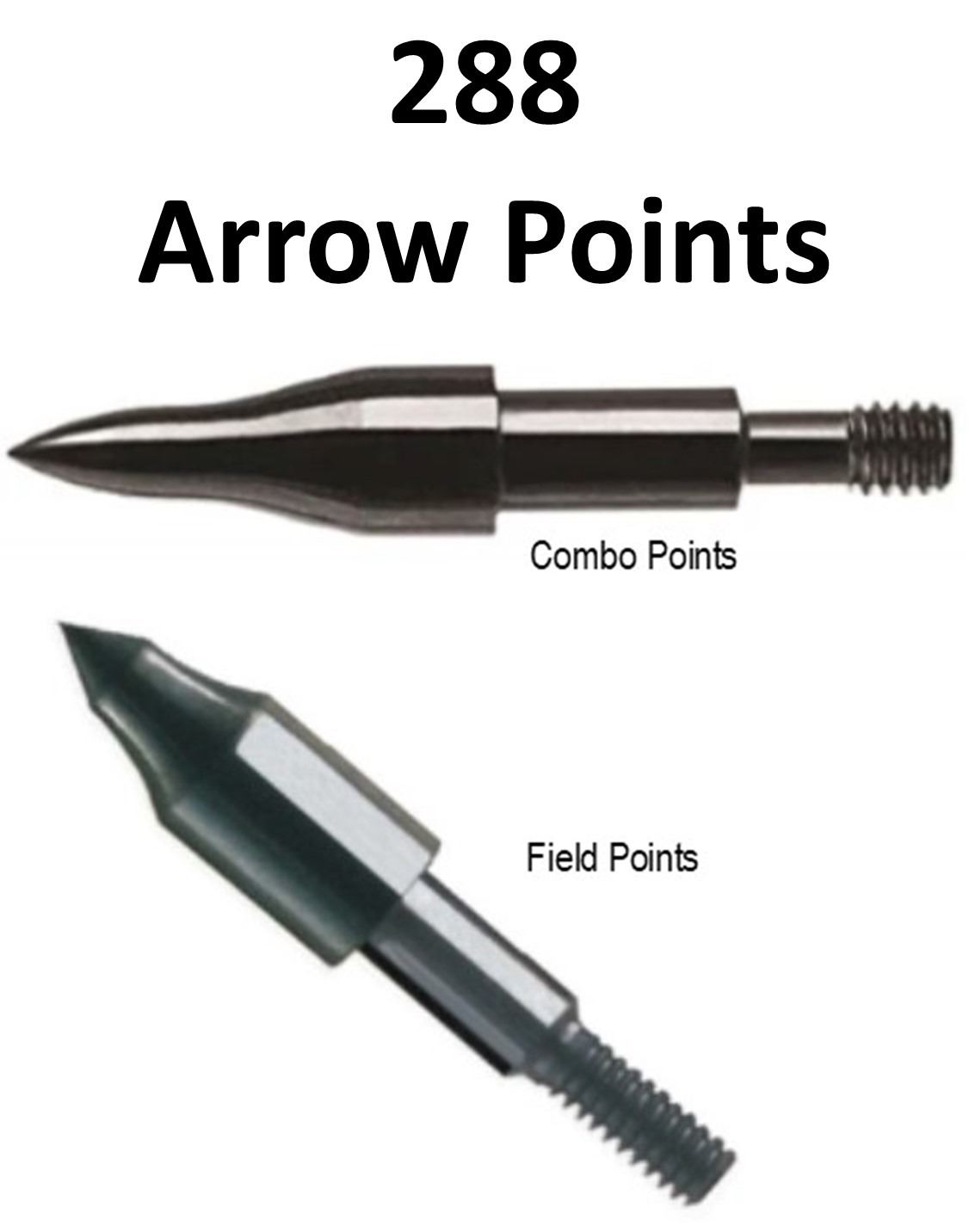 24 Doz. Saunders 11/32 Arrow Points, 9 Doz. Combo Points, 6-85Grain, 3-100 grain, 15 Doz. Field Points, 1-145 grain, 6-175 grain, 4-200 grain, 4-250 grain