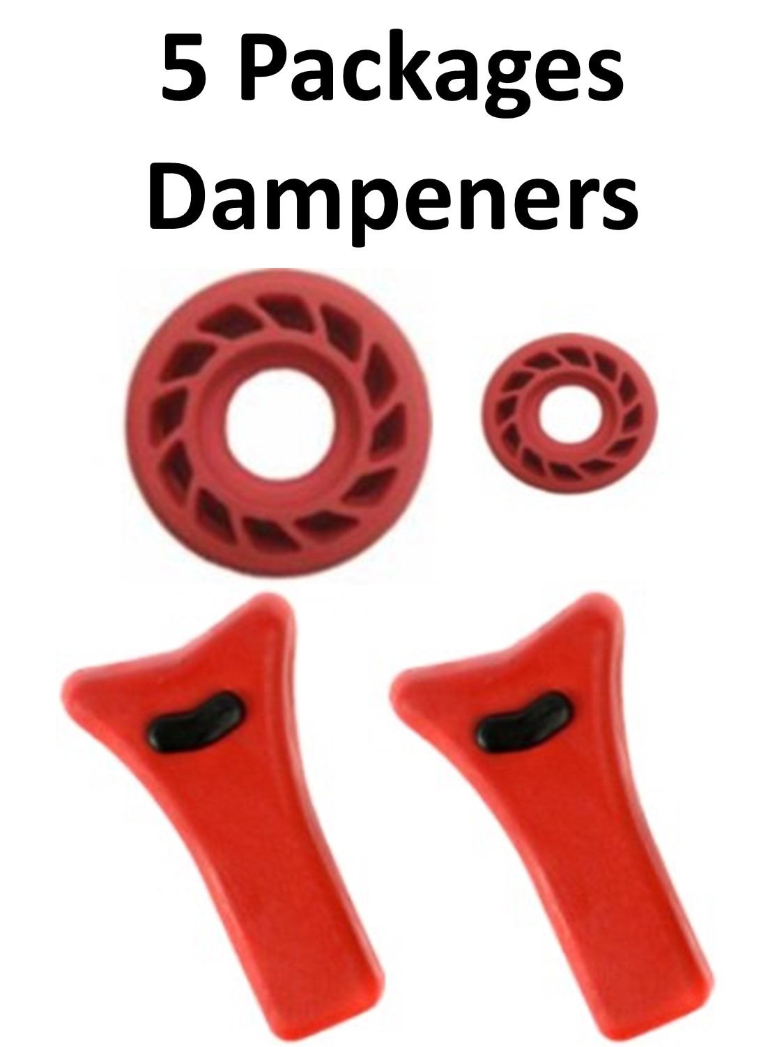 5 x Mathews Dampeners, 1-HDS 3/8" Lite Red, 2-Dead Stop Bright Red, 1-String Stop Red, 1-Mini Harmonic Red