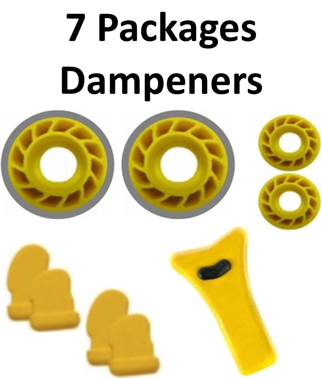 7 x Mathews Dampeners, 2-Yellow/Grey Lite, 2-Mini Harmonic Yellow, 2-String Suppressor Yellow, 1-String Stop Yellow