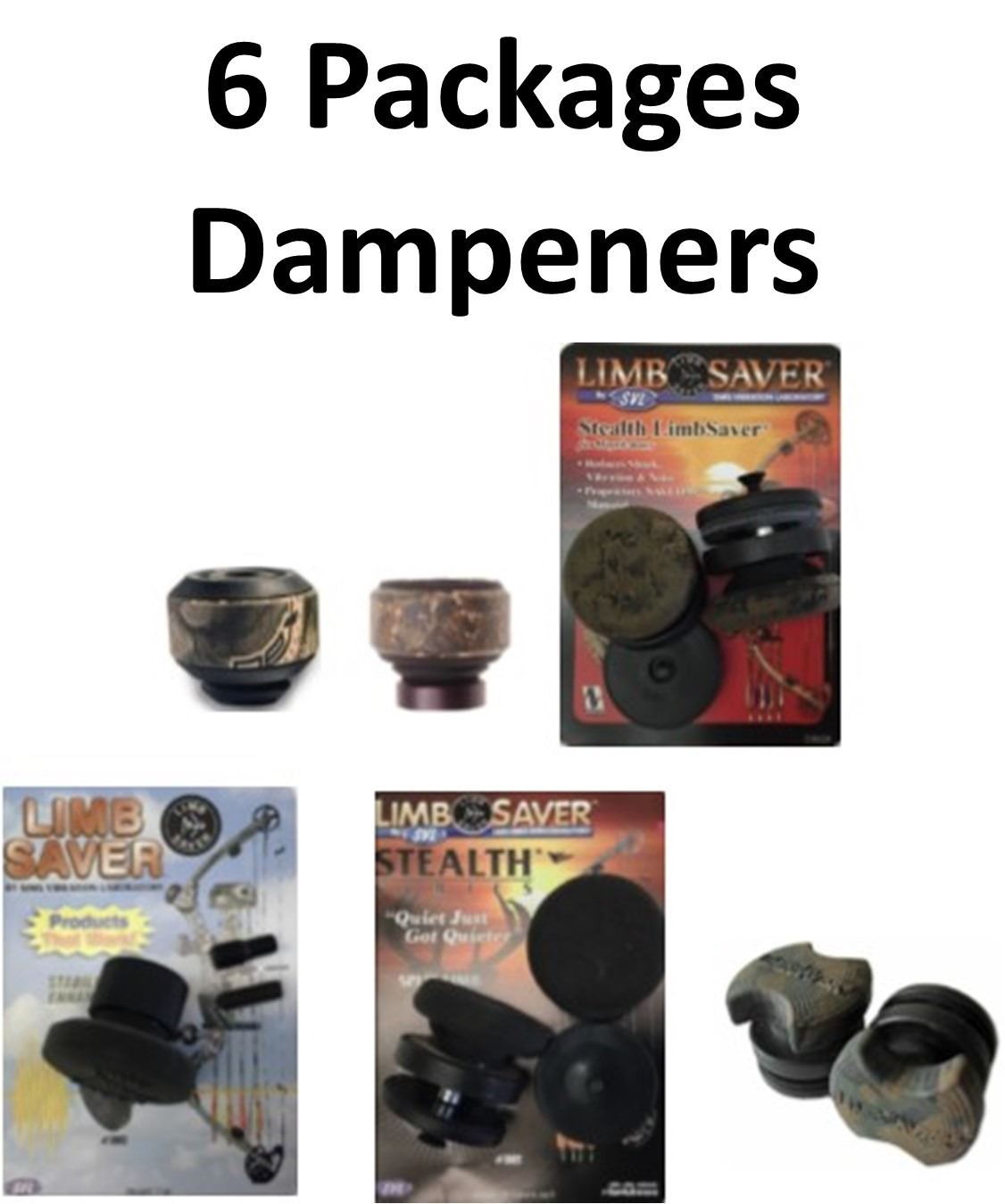 6 x Limb Dampeners, 1-Cable Guard G1, 1-Mini Xtreme Camo, 1-Stealth Hoyt Camo, 1-Enhancer, 1-Stealth Split, 1-Hoyt Ultra