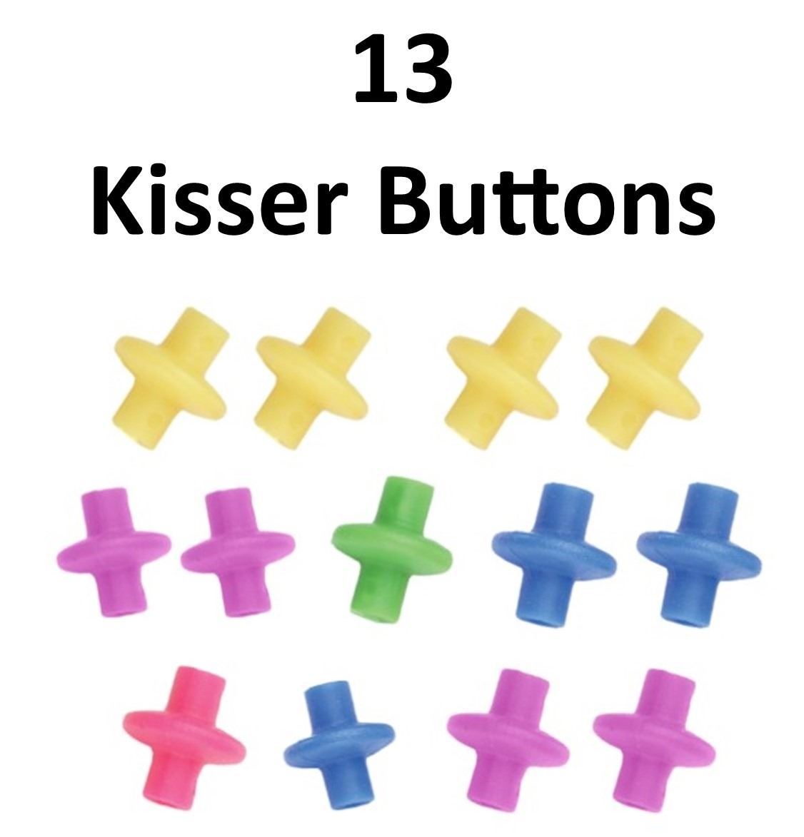 13 x Pine Ridge Kisser Buttons, 8 x Slotted, 2-Yellow XL, 2-Purple, 1-Green XL, 2-Blue XL, 1-Blue, 5 x Slide On, 2-Yellow XL Slide On, 1-Pink XL, 2-Purple XL