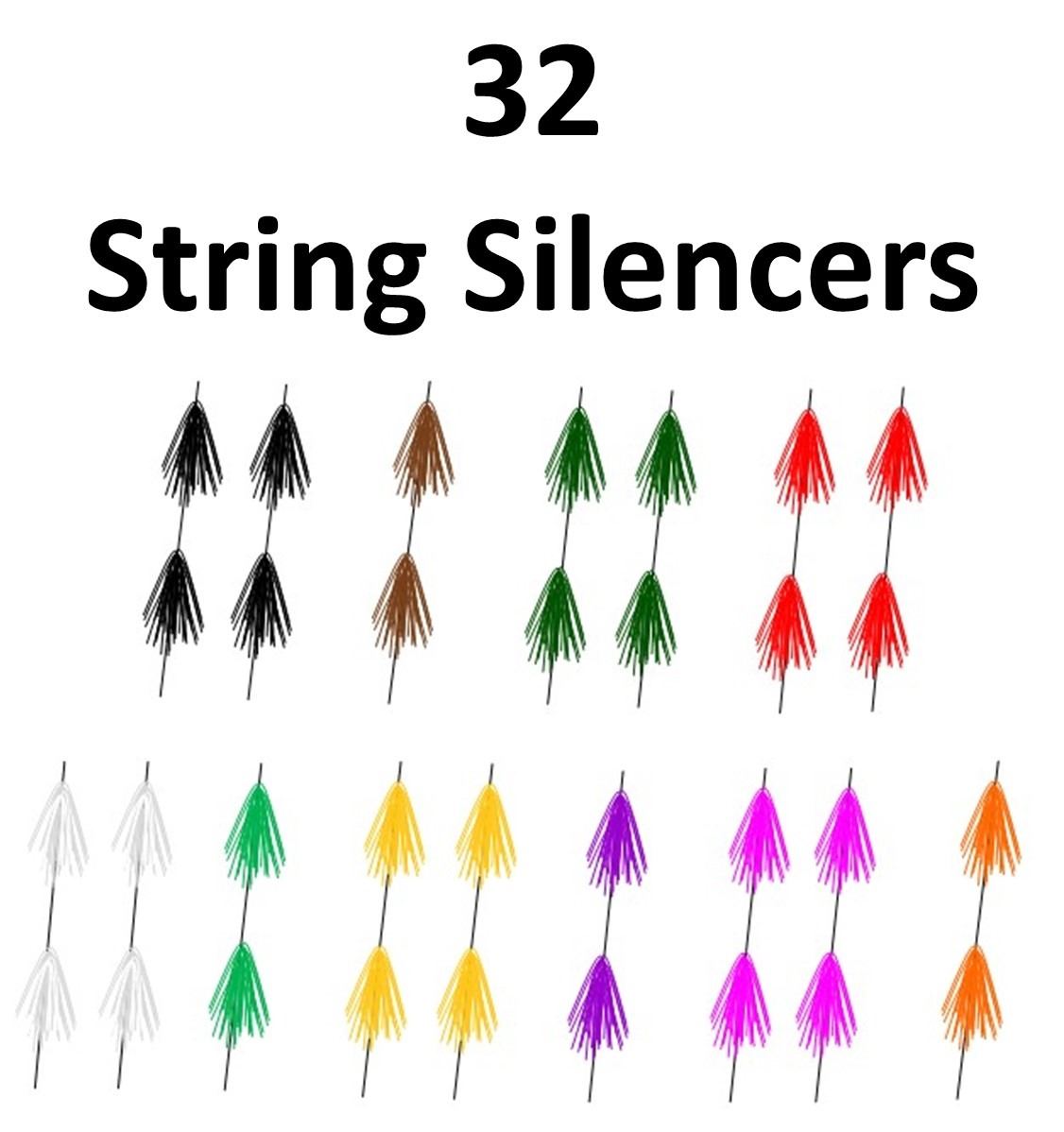32 x OMP String Silencers, 4-Black, 2-Brown, 4-Forest Green, 4-Red, 4-White, 2-Green, 4-Yellow, 2-Purple, 4-Pink, 2-Orange