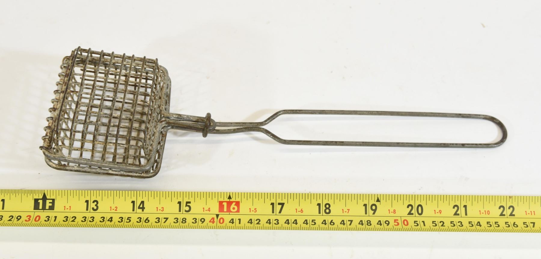 2"x3"x1.5" clamshell basket. Approximately 11" long.