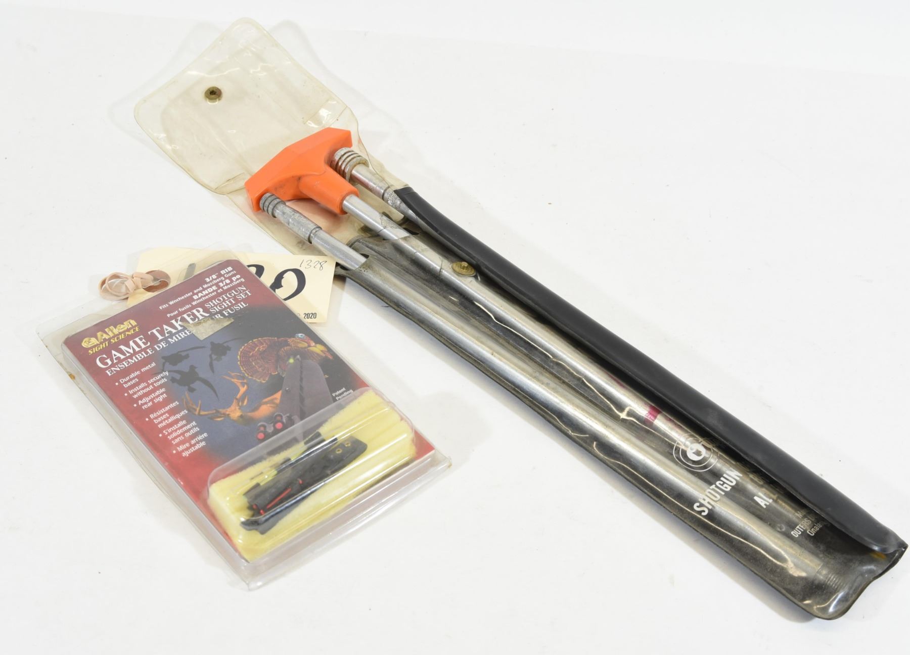 One Allen Game Taker fiber optic shotgun sight fits 3/8" rib. New in package. One Outers Shotgun cleaning rod BP610 for all gauges.