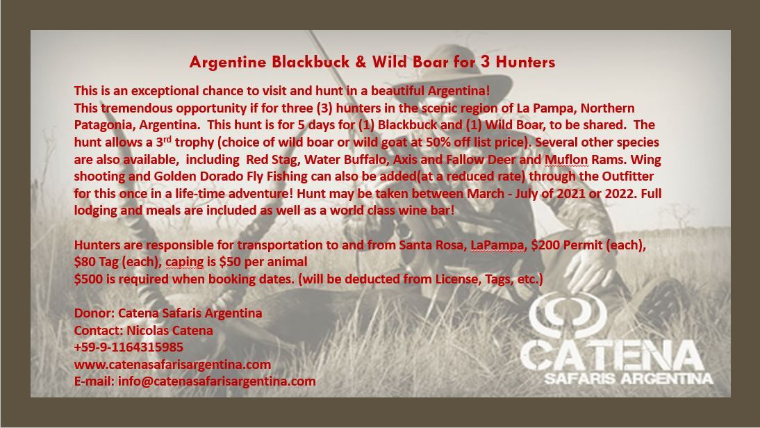 Lot 1 Catena Safaries Argentina Blackbuck and Wild Boar hunt in Northern Patagonia