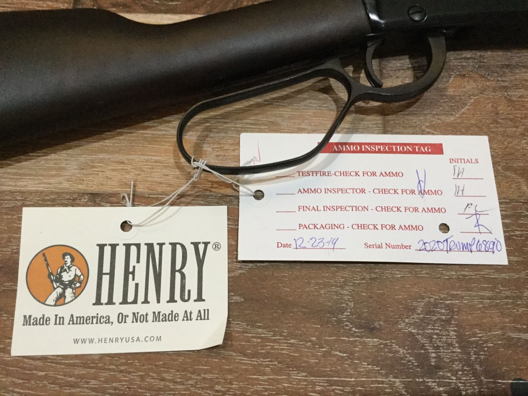 Limited edition "Trump 2020" Henry 22cal lever action rifle.