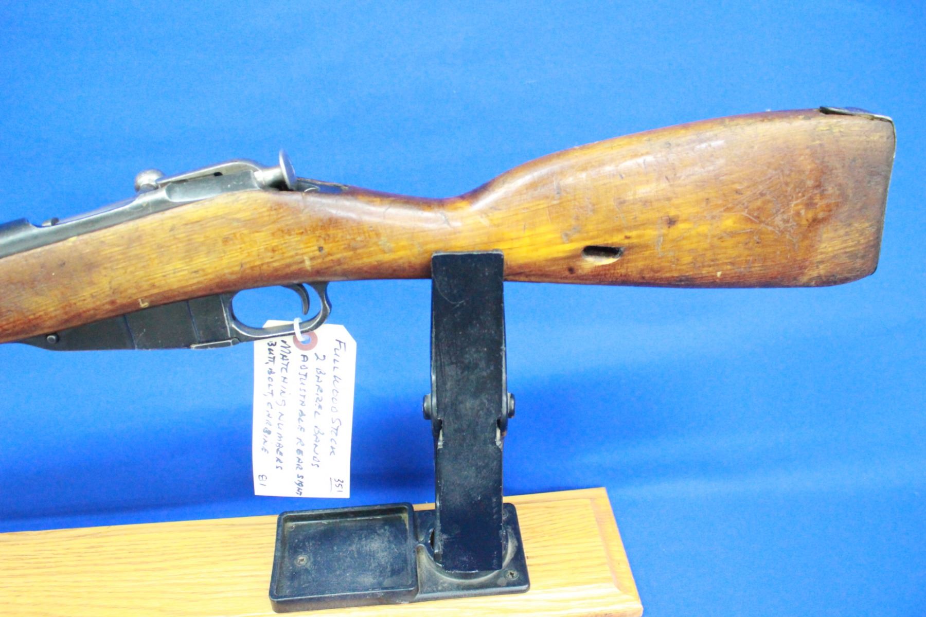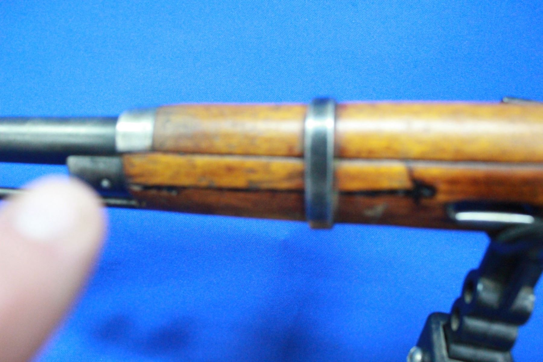 7.62mm; Bolt Action; 20" Barrel; Good, Clean bore; Full Wood Stock; 2 Barrel Bands; Adjustable Rear Sight; S/N 1320 - Matching Butt, Bolt, Carbine
