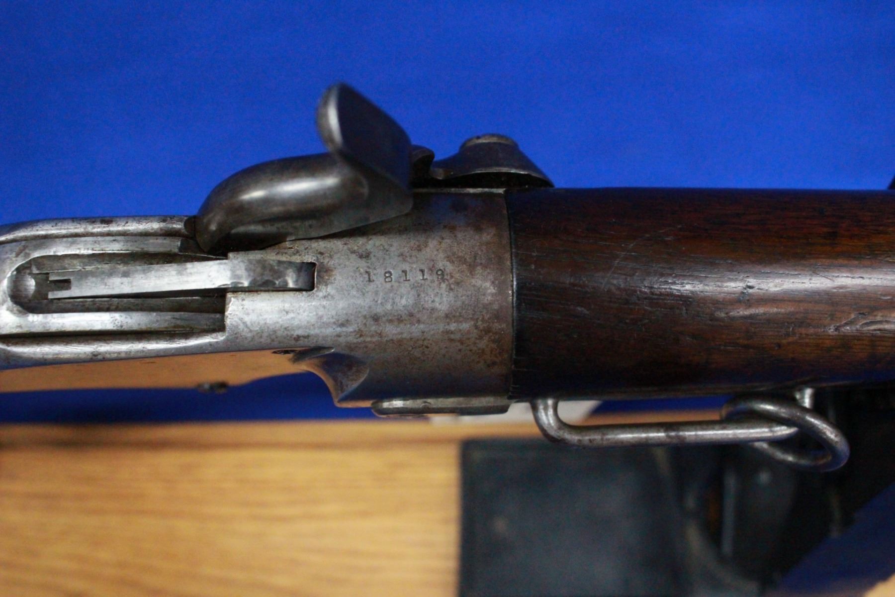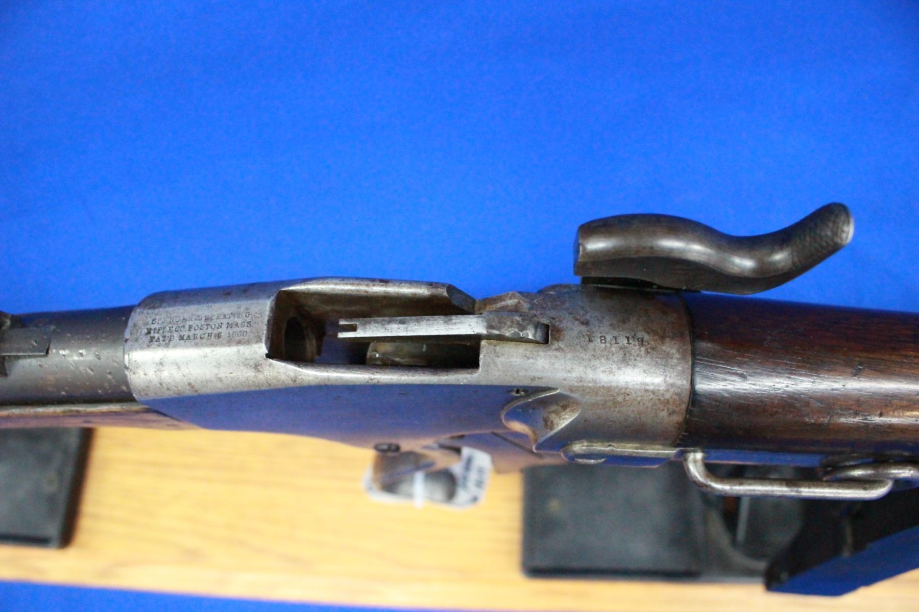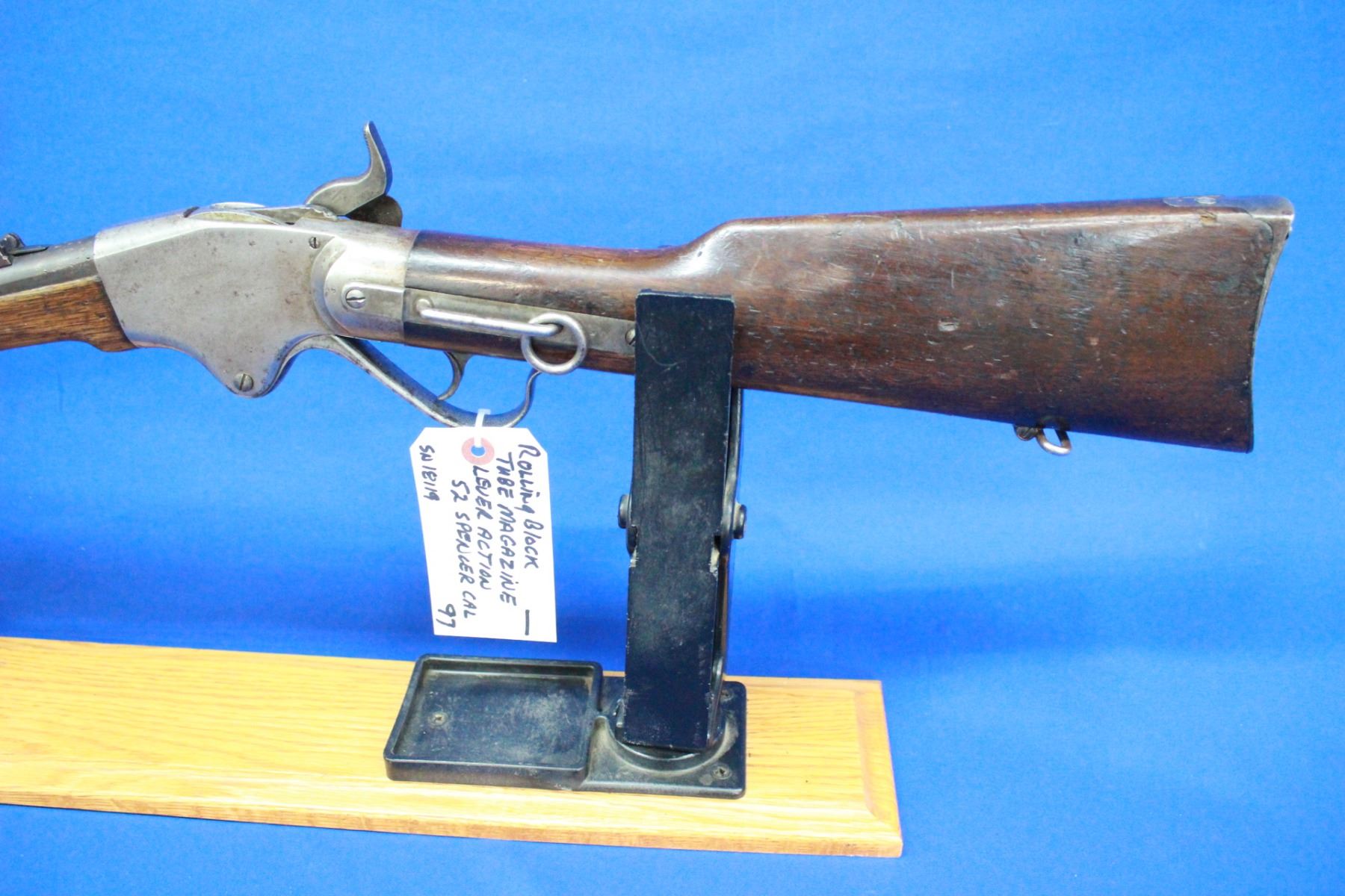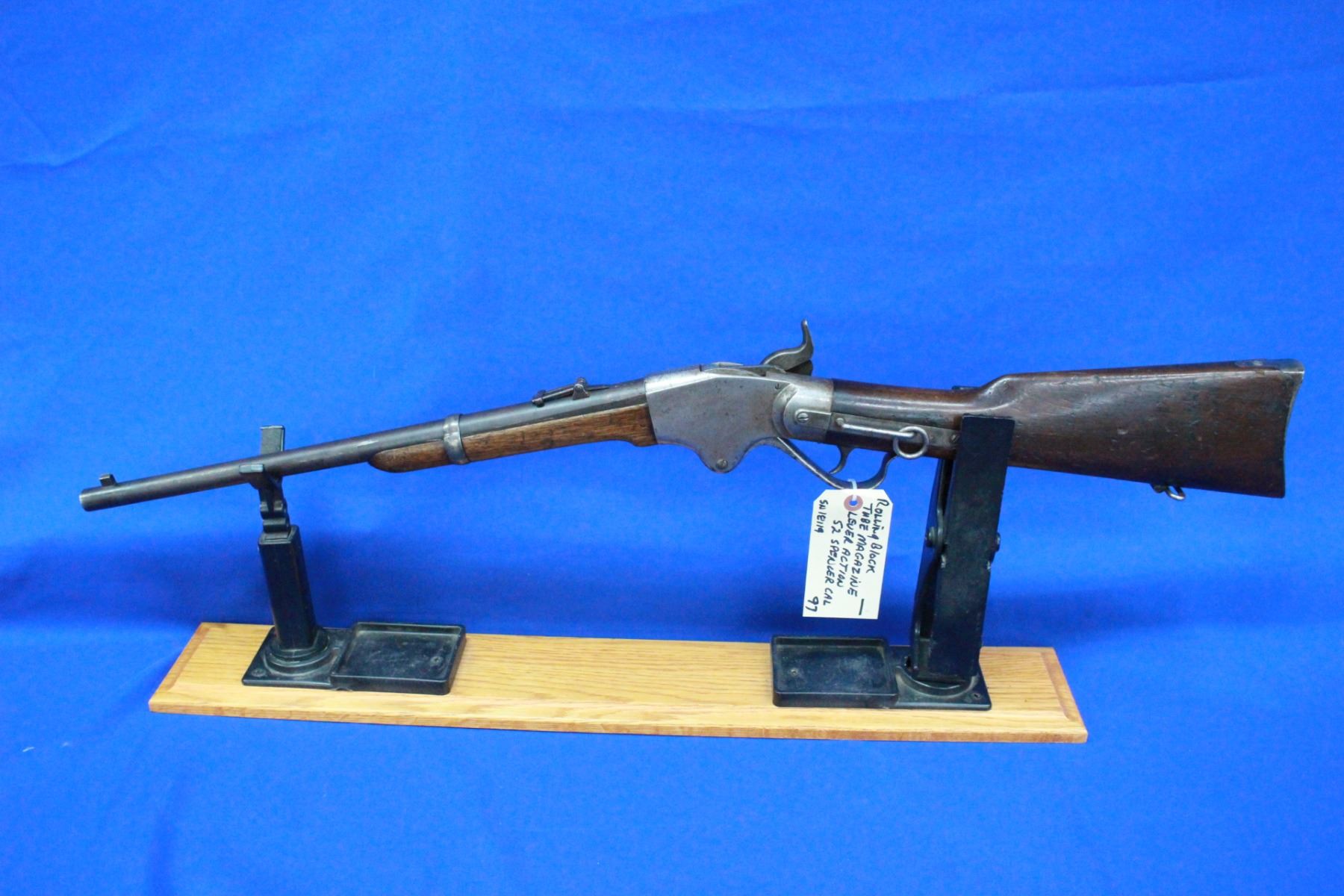 52 Spencer caliber; Lever Action; 20" Barrel; Some Pitting in the Bore; Rolling Block Action; Removeable Tube Magazine in the Rear Stock; Walnut Stocks; **Does not have a Stabler Cutoff; S/N 18119