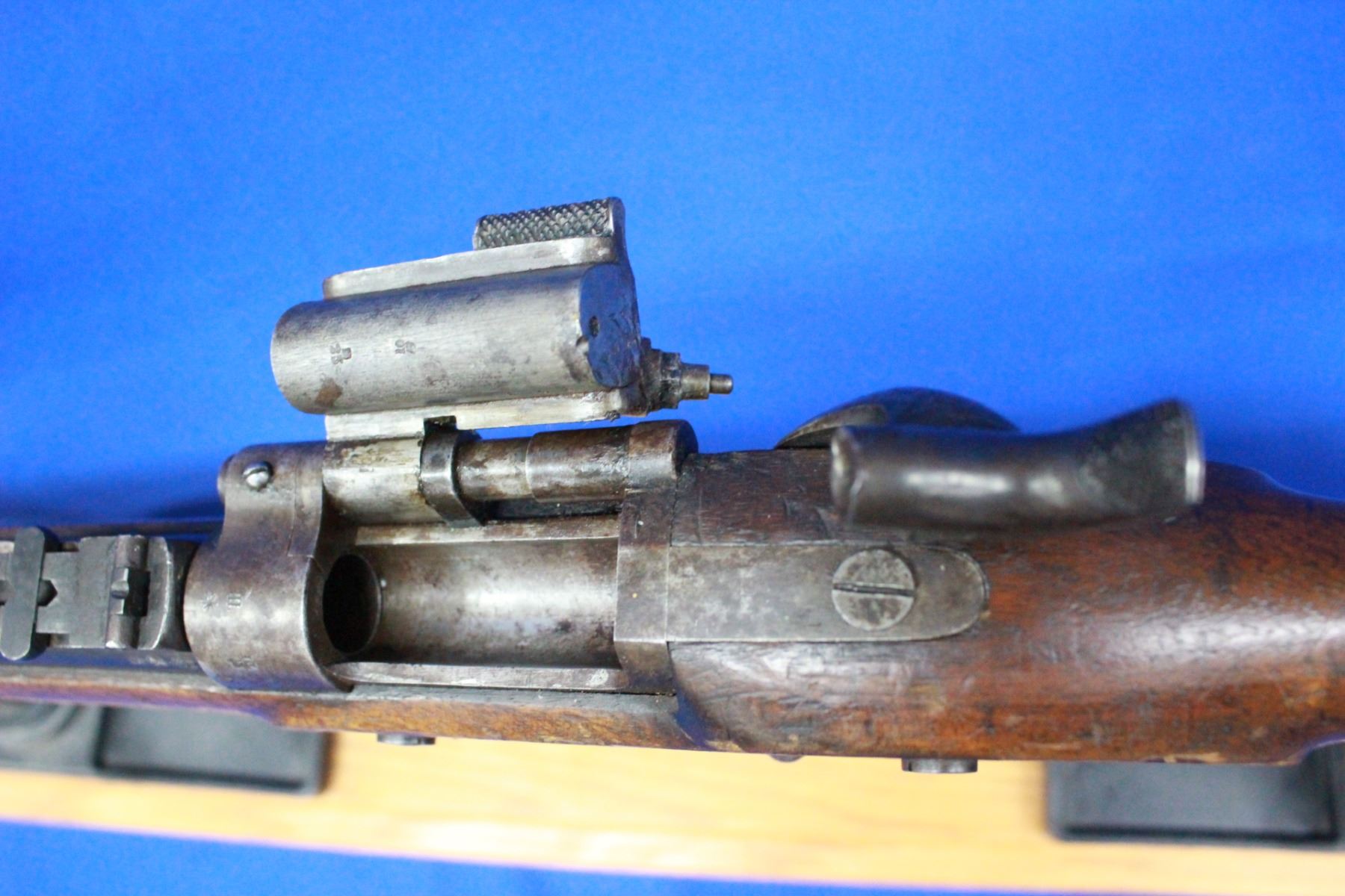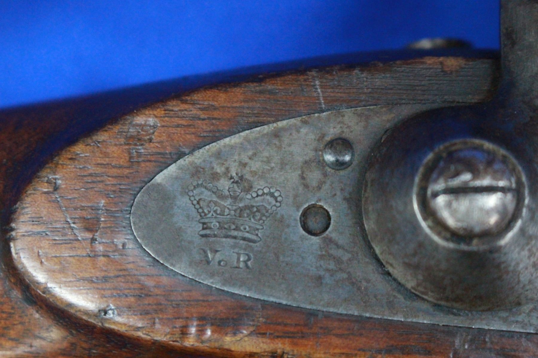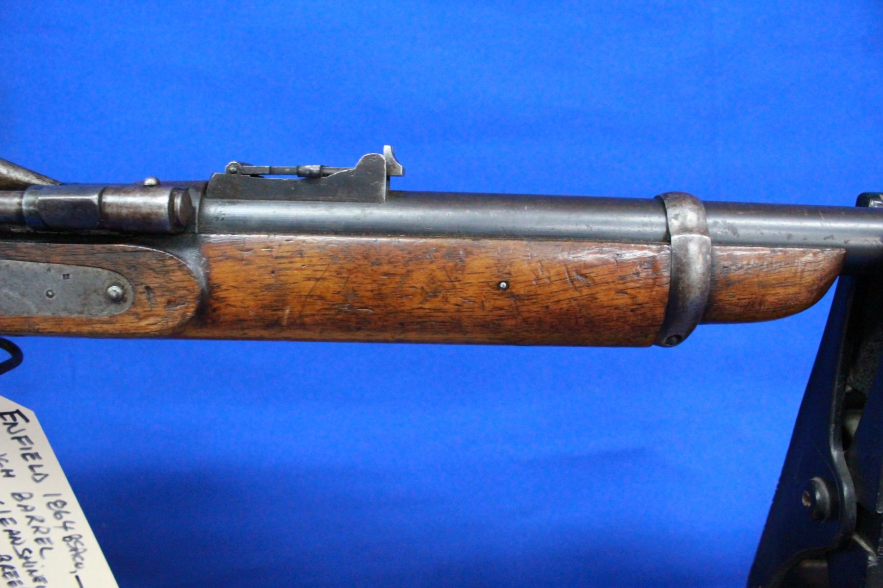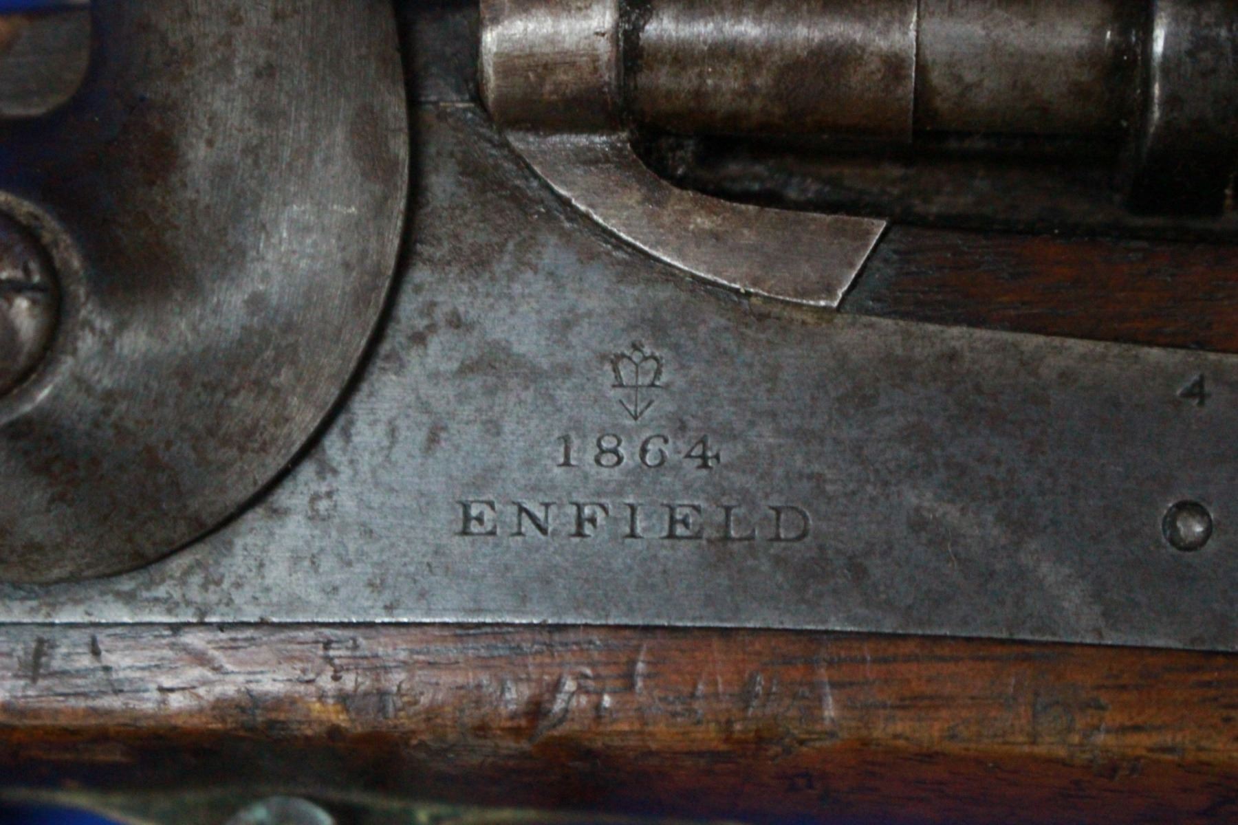577 Snider cal.; Side Hinged Breech Single Shot; Percussion Center Fire; 19" Barrel; Bore is Good, Clean & Shiny; Brass Trigger Guard & Butt Plate; 5 Over 31 Stamped on the Butt Plate; Piece out of the Stock ahead of the Trigger Guard