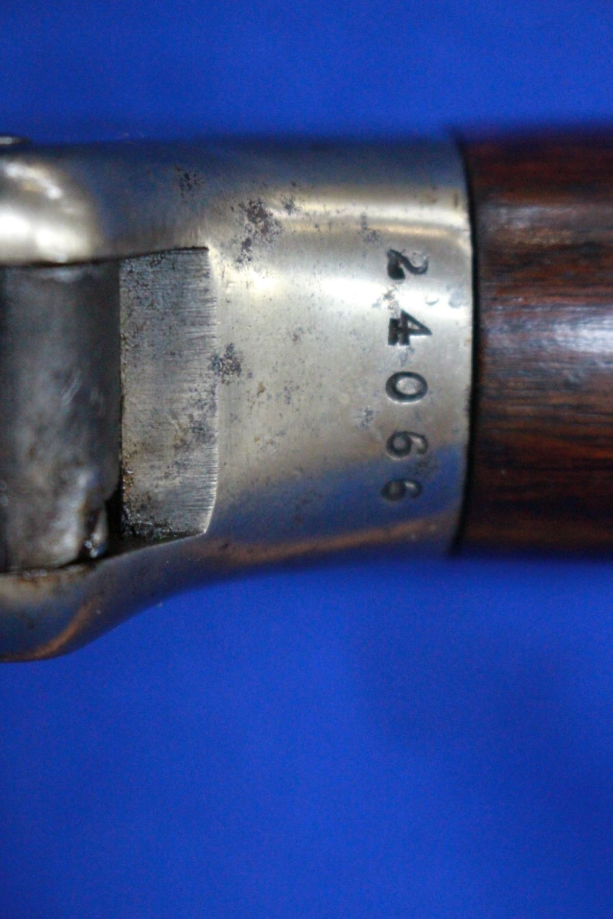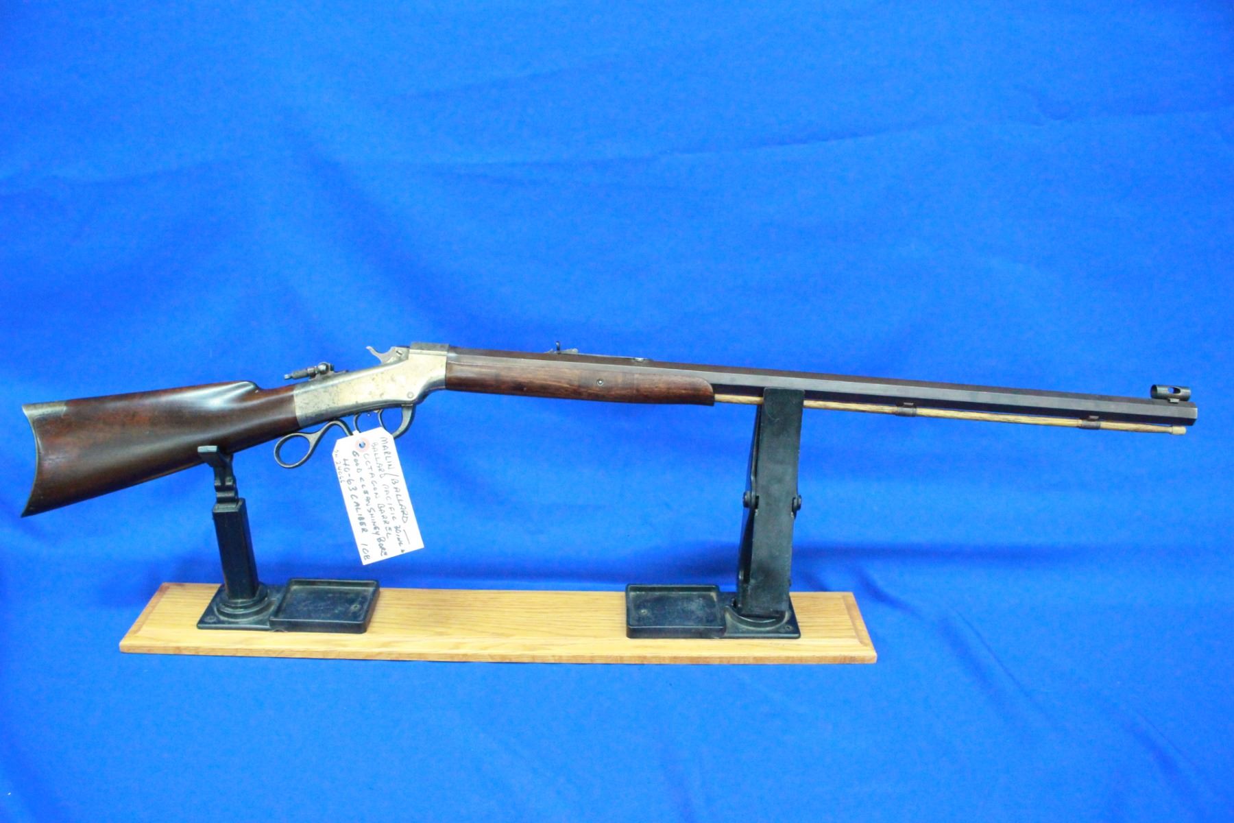 40-63 caliber; Lever Action, Falling Block; 30" Octagon Barrel; Good, Clean, Shiny Bore; Rear Tang Sight; Rear Barrel Sight; Covered Front Sight; Crescent Butt; S/N 24066