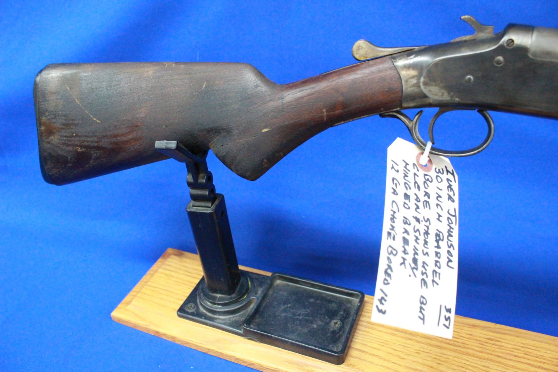 12 ga.; Choke Bored; 30" Barrel; Bore shows use but Clean & Shiny; Hinged Break; Fore-end has a Small Crack; Rear Stock also has a Crack
