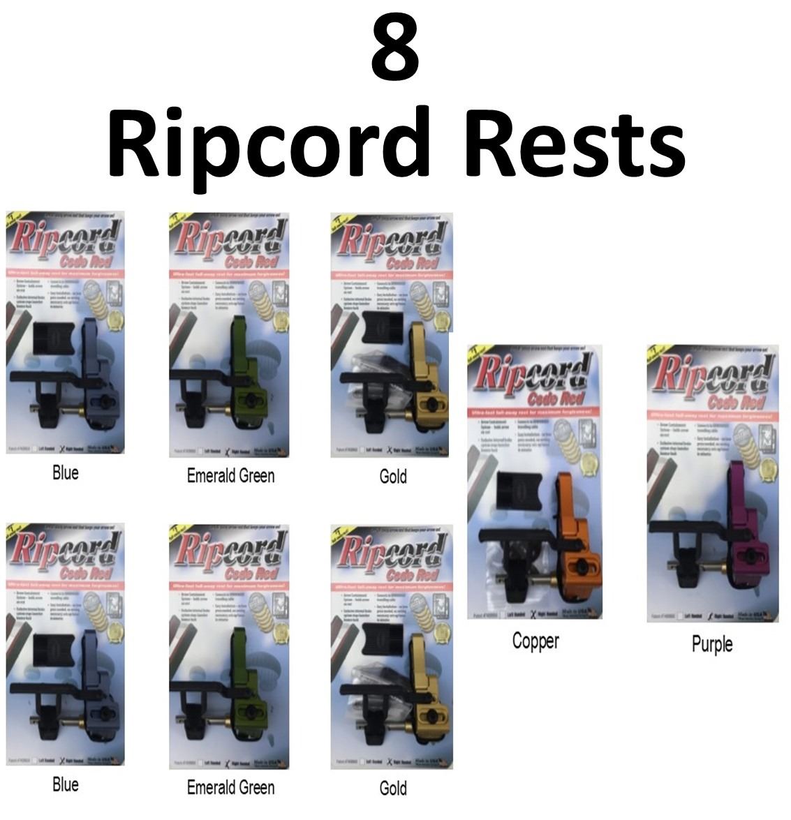 8 x Ripcord Rests, 1-Orange RH, 1-Purple RH, 2-Blue RH, 2-Emerald Green RH, 2-Gold RH