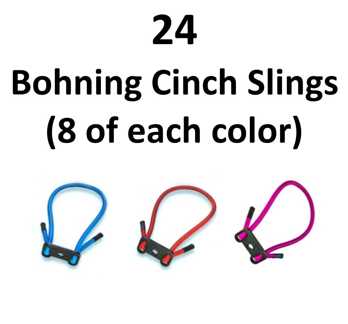 24 x Bohning Cinch Slings, 8-Red , 8-Blue, 8-Hot Pink