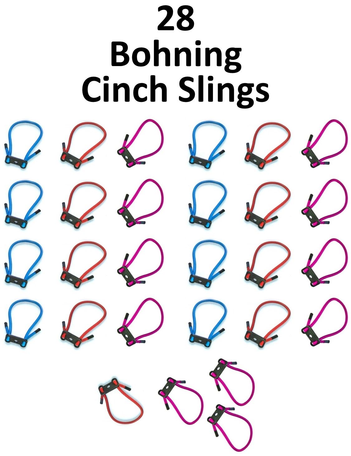 28 x Bohning Cinch Slings, 9-Red , 8-Blue, 11-Hot Pink