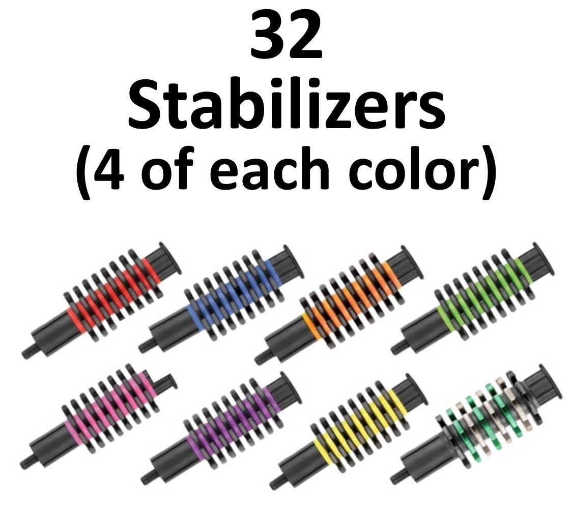 32 x Pine Ridge Sawtooth Stabilizers, 4-Red, 4-Blue, 4-Orange, 4-Lime Green, 4-Pink, 4-Purple, 4-Yellow, 4-Camo
