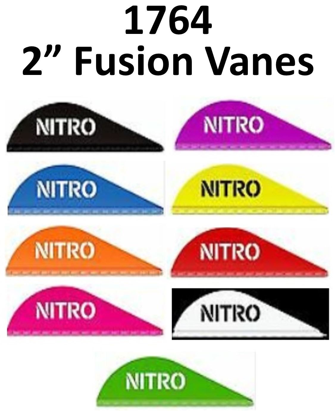 49 x 2" Fusion Vanes 36/pk, 6-Neon Orange , 10-Neon Pink, 6-Red, 6-Yellow, 8-Blue, 3-White, 3-Black, 6-Purple, 2-Neon Green