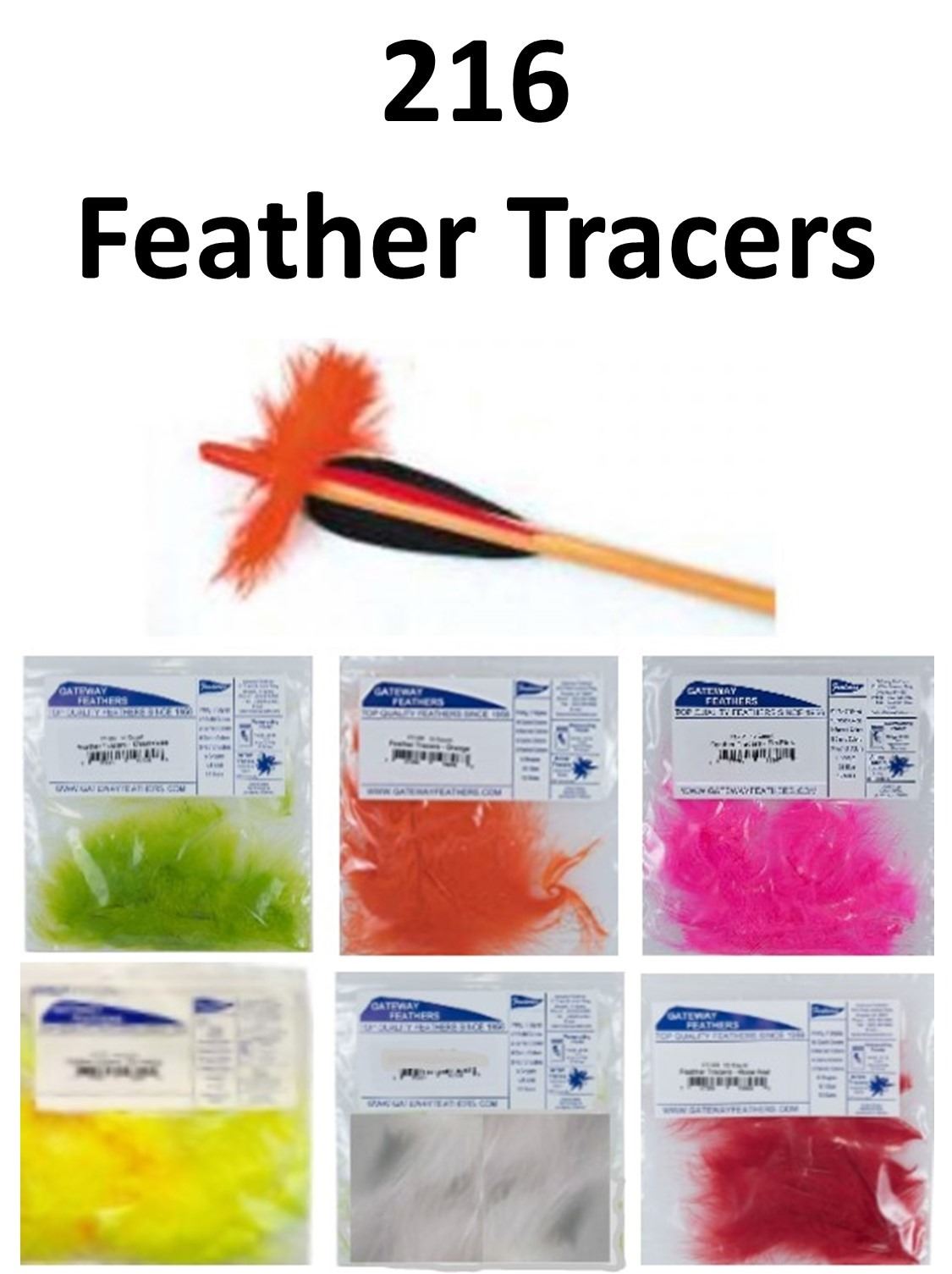 18 x Gateway Feather Tracers 12/pk, 3-Charteruse, 3-Orange, 3-Flo Pink, 3-White, 3-Flo Yellow, 3-Red