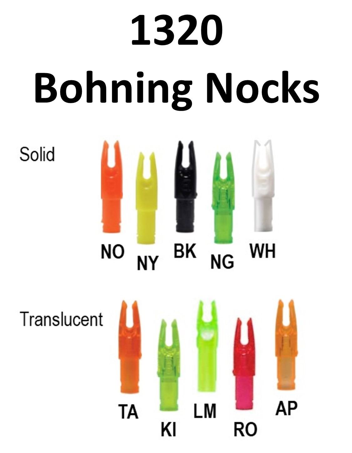 110 x Bohning Signature Nocks .244 - 12 pk, 8-Tangerine, 10-Kiwi, 10-Neon Orange, 10-Neon Yellow, 12-Black, 12-Neon Green, 12-Lime, 12-Rose, 12-Apricot, 12-White