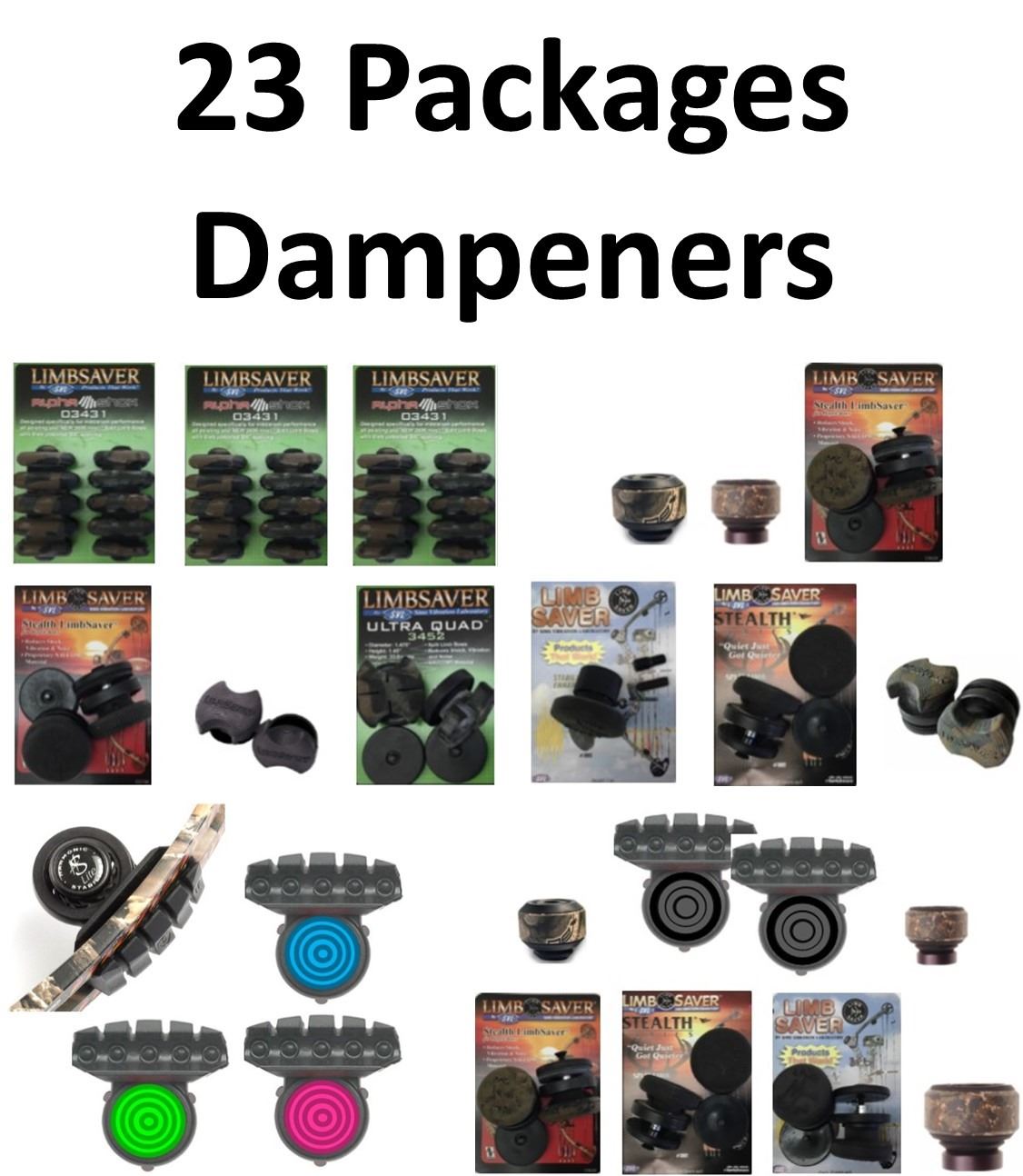 23 x Limb Dampeners, 4 x Axion Limb Dampeners 2/pk, 1-Axion Black, 3 x Hybrid, 1-Blue, 1-Lime Green, 1-Pink, 4 x Limb Saver Dampeners, 2-Cable Guard G1, 1-Mini Xtreme Camo, 1-2pk Stealth Hoyt Camo, 1-2/pk Enhancer, 1-2/pk Stealth Split, 1-2pk Hoyt Ultra, 3-AlphaShox Camo, 1-Stealth Hoyt Split, 1-Stealth Hoyt Ultra Split,1-2007 Split Camo, 1-Axion, 1-Mini Xtreme, 1-Stealth Hoyt, 1-Stealth, 1-Split Limb, 1-Xtreme