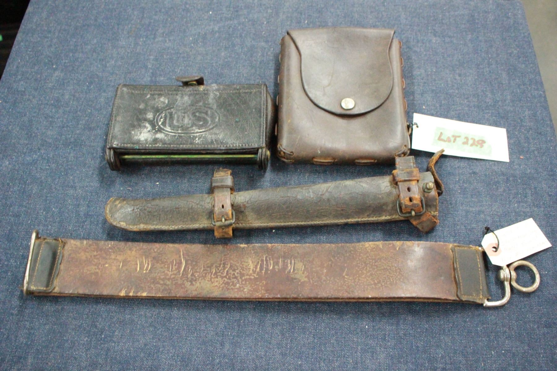 Lot 229 Mounted Police Razor Strap, Leather Scabbard & 2 Leather Pouches
